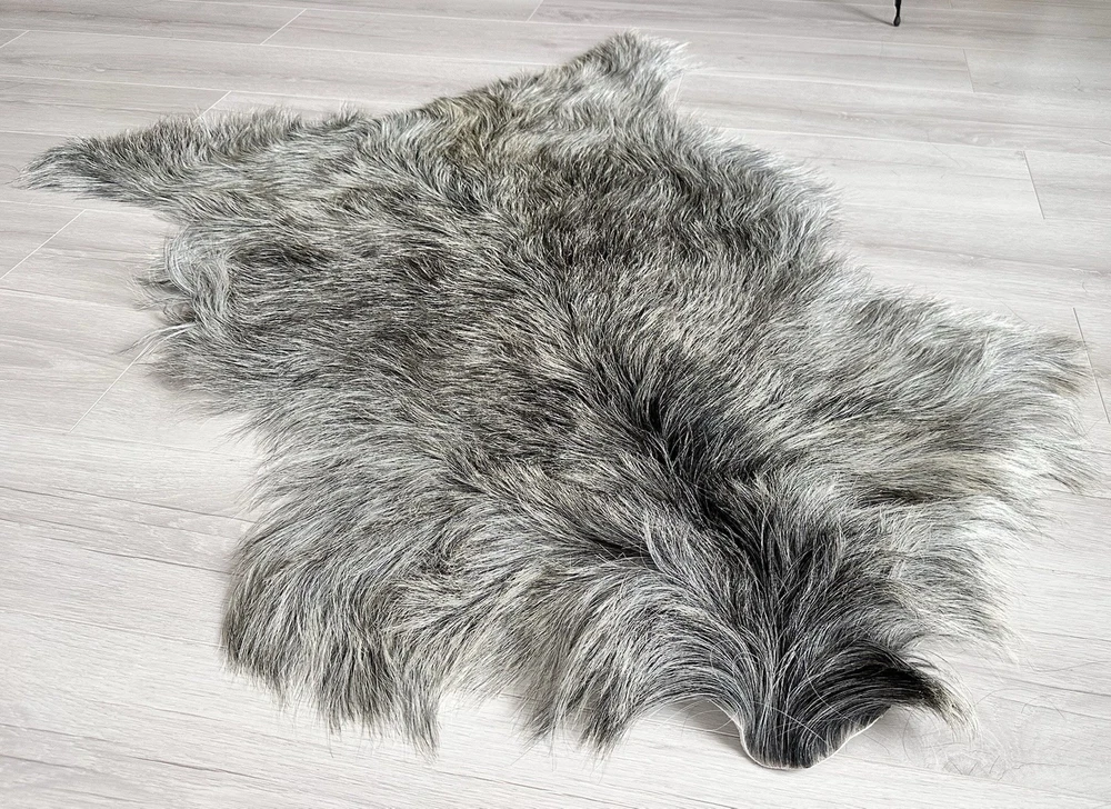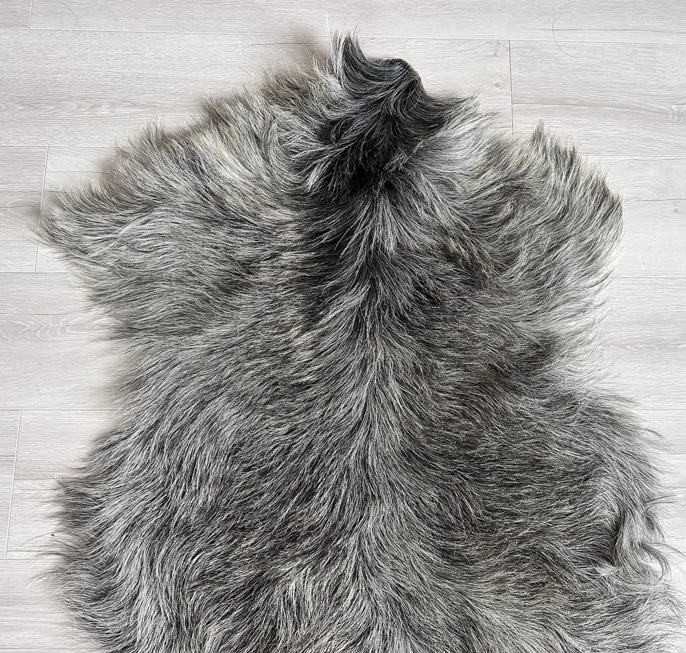 Received beautiful sheepskin with lovely dark colors and patches of lighter toned. Received shipment promptly and I went on to purchase another sheepskin for my mother