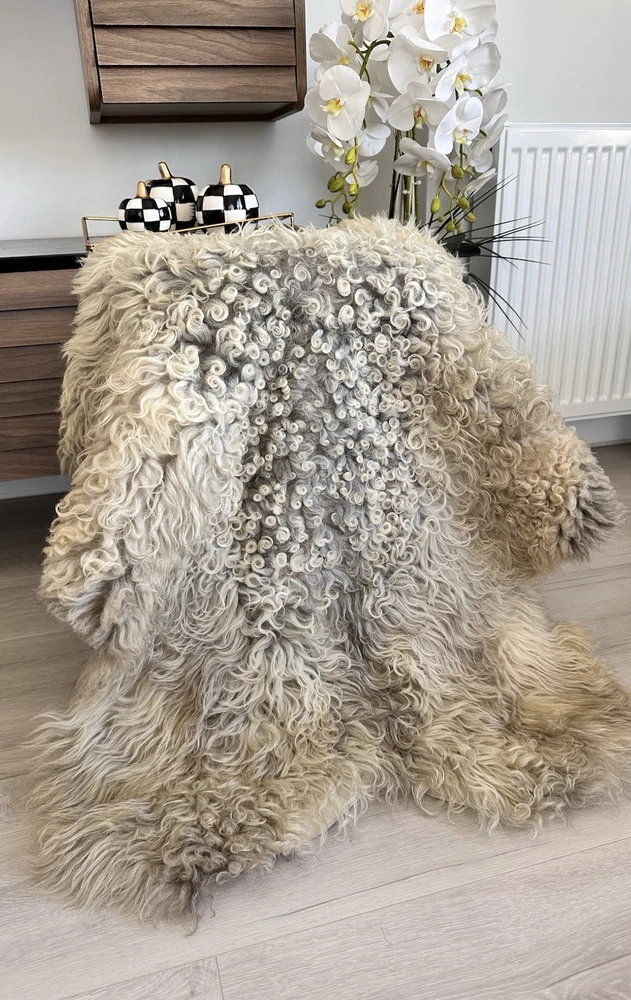 %100 Natural Gotland Sheepskin Rug,sheepskin Pelt,Natural Color,beige,Brown