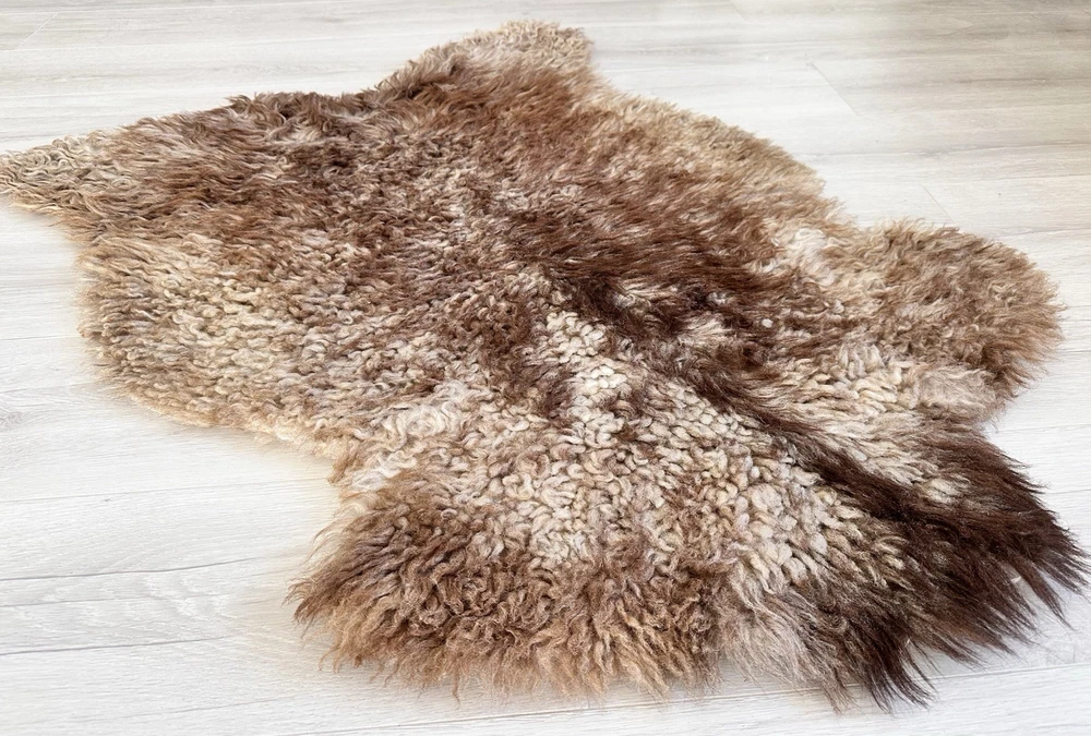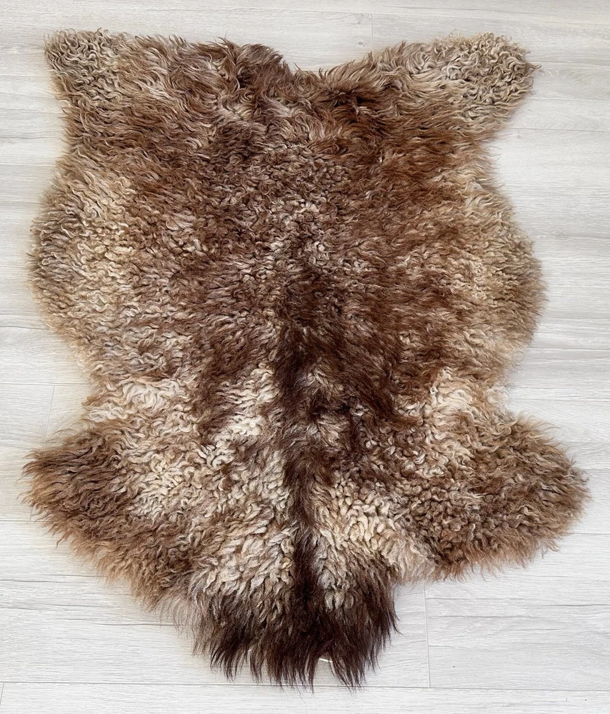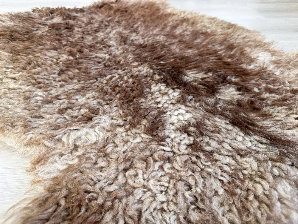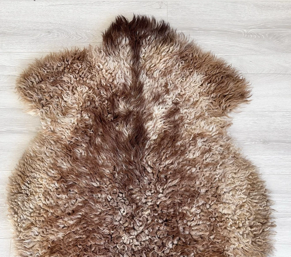Received beautiful sheepskin with lovely dark colors and patches of lighter toned. Received shipment promptly and I went on to purchase another sheepskin for my mother