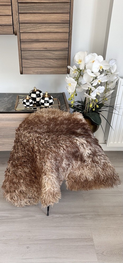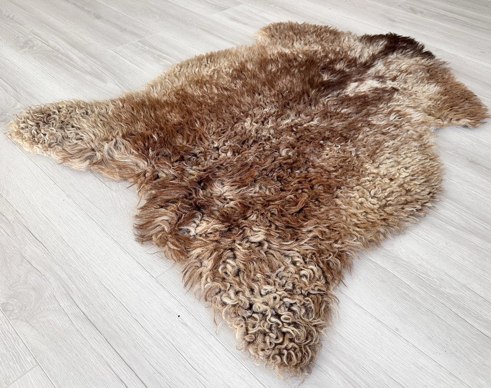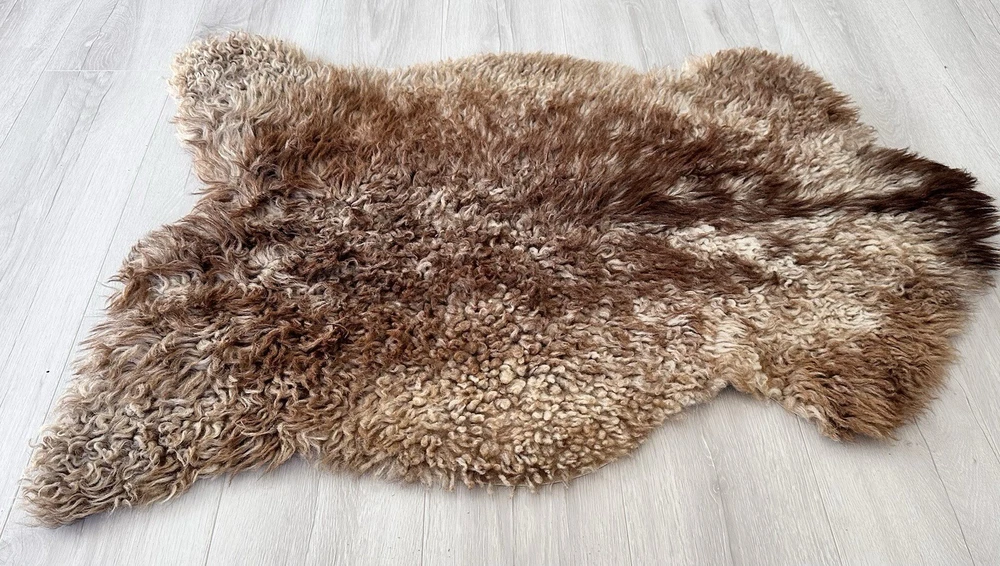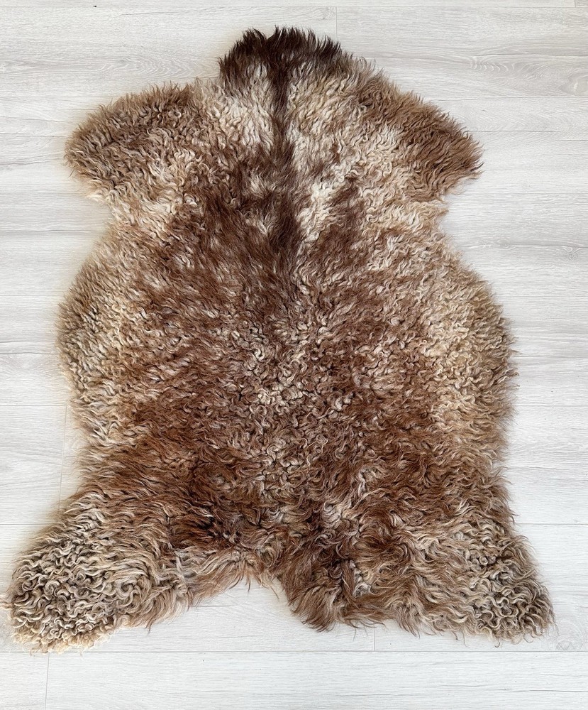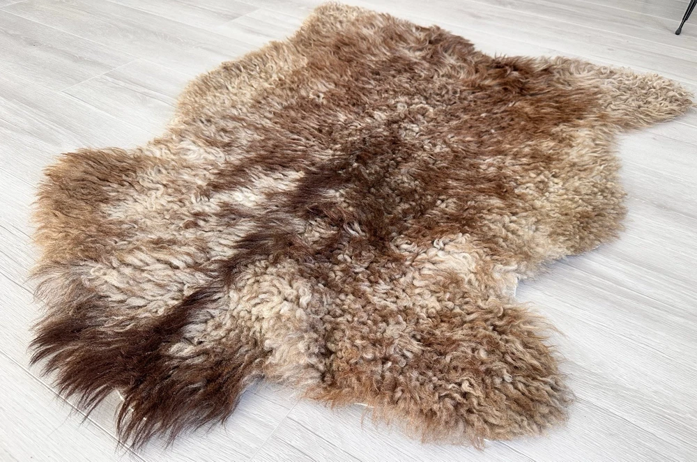 Received beautiful sheepskin with lovely dark colors and patches of lighter toned. Received shipment promptly and I went on to purchase another sheepskin for my mother