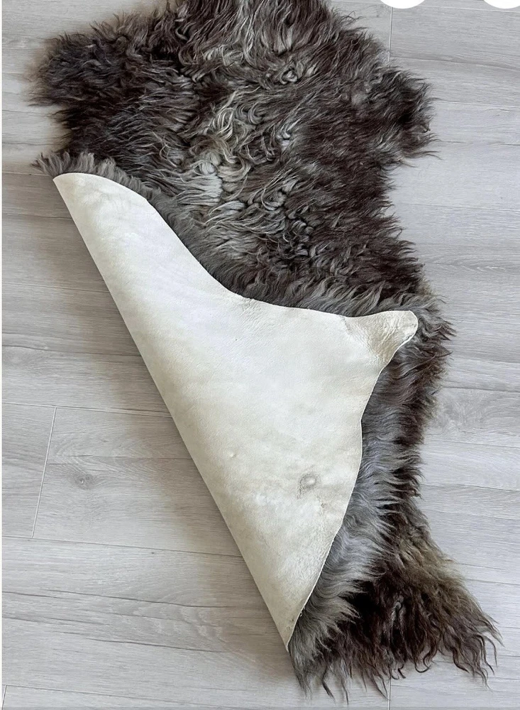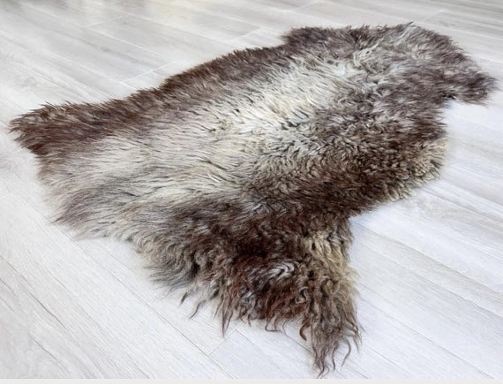 %100 Natural Goatskin Rug,goatskin Pelt,goatskin Carpet,Color,gray,off White.