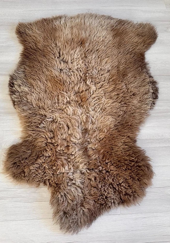 Received beautiful sheepskin with lovely dark colors and patches of lighter toned. Received shipment promptly and I went on to purchase another sheepskin for my mother