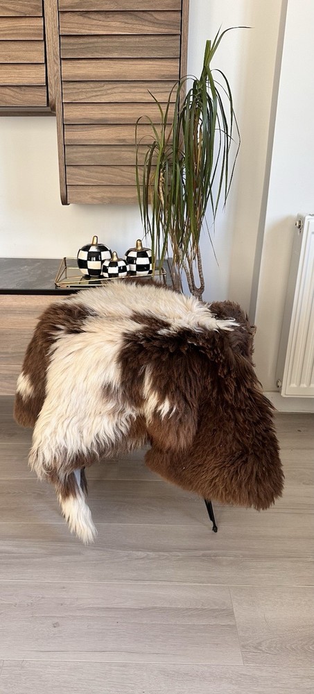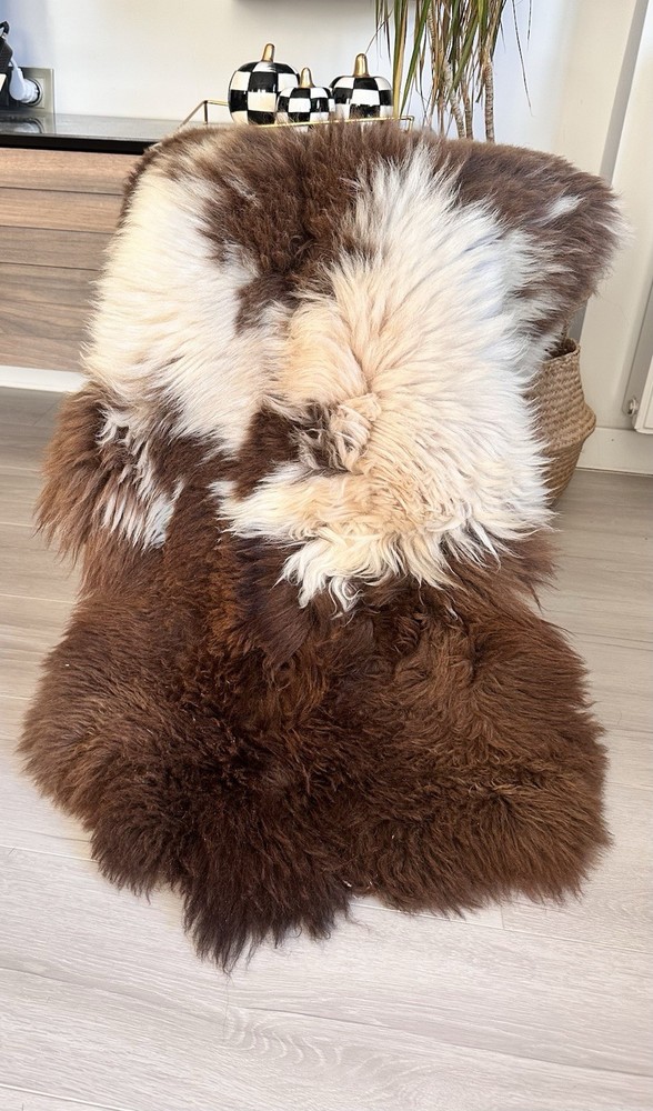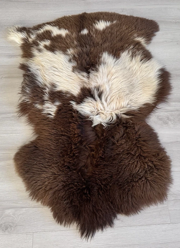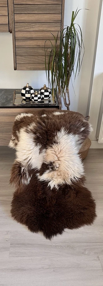 Received beautiful sheepskin with lovely dark colors and patches of lighter toned. Received shipment promptly and I went on to purchase another sheepskin for my mother