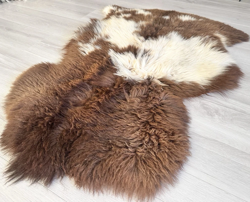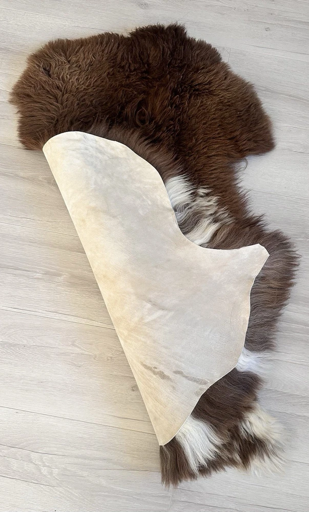 This %100 Natural Sheepskin Rug is a genuine sheepskin product in natural color, featuring a blend of brown and gray tones. Made in Türkiye, the rug measures 41 inches in length and 28 inches in width. With its high-quality material and unique multicolor design, this rug is perfect for adding a touch of natural beauty and texture to any home decor setting.