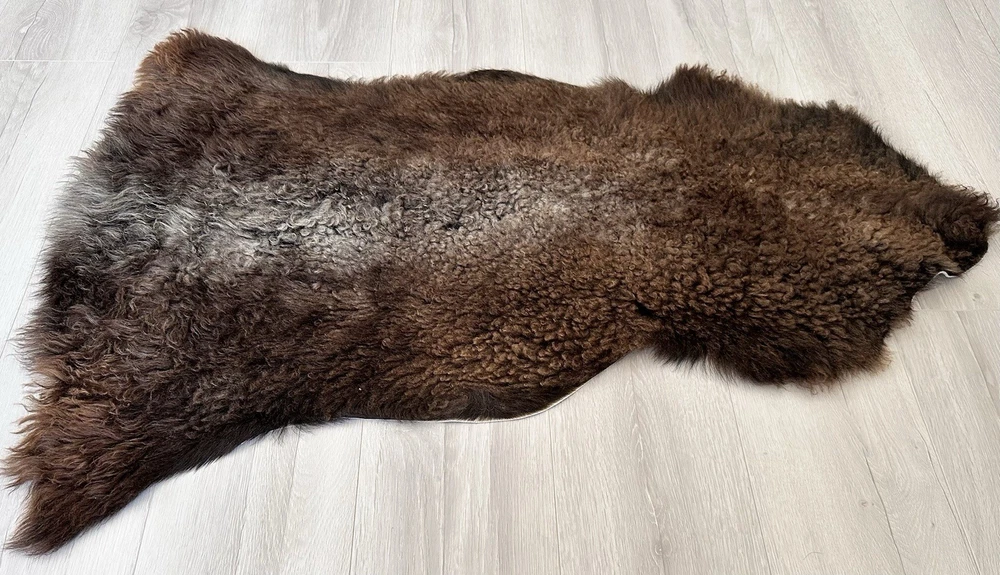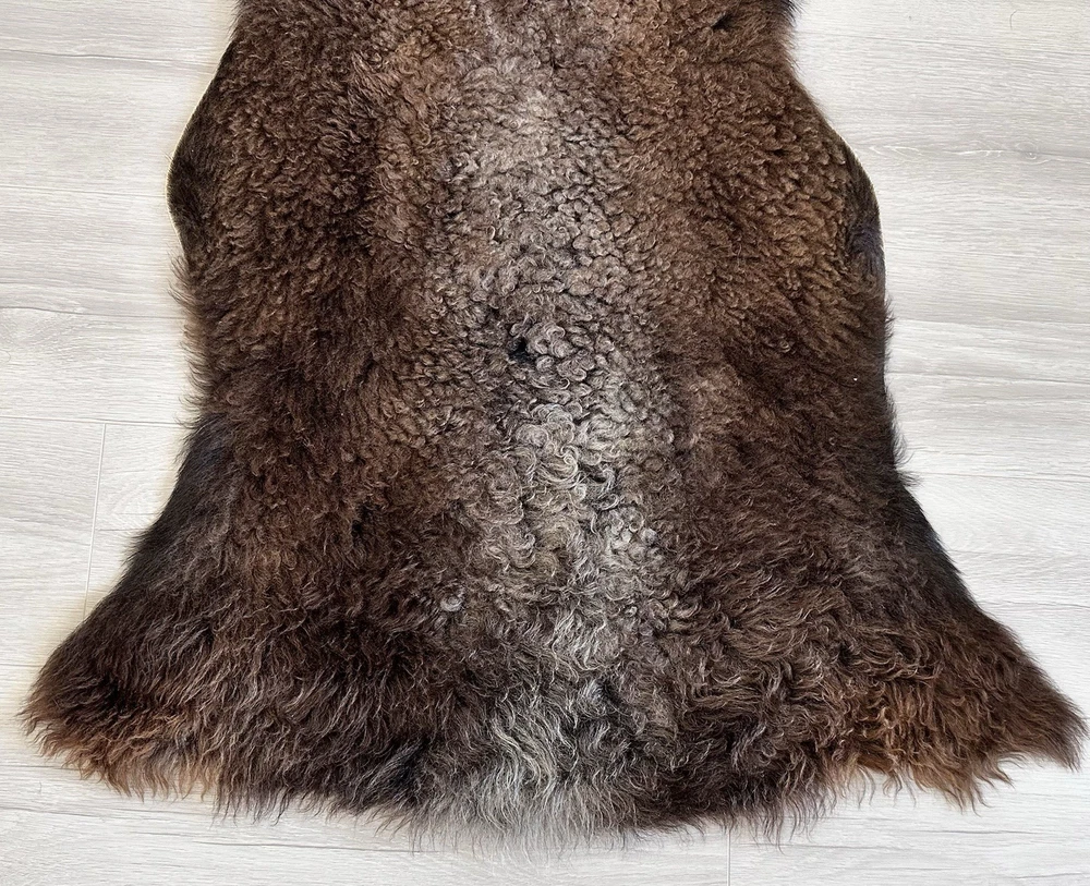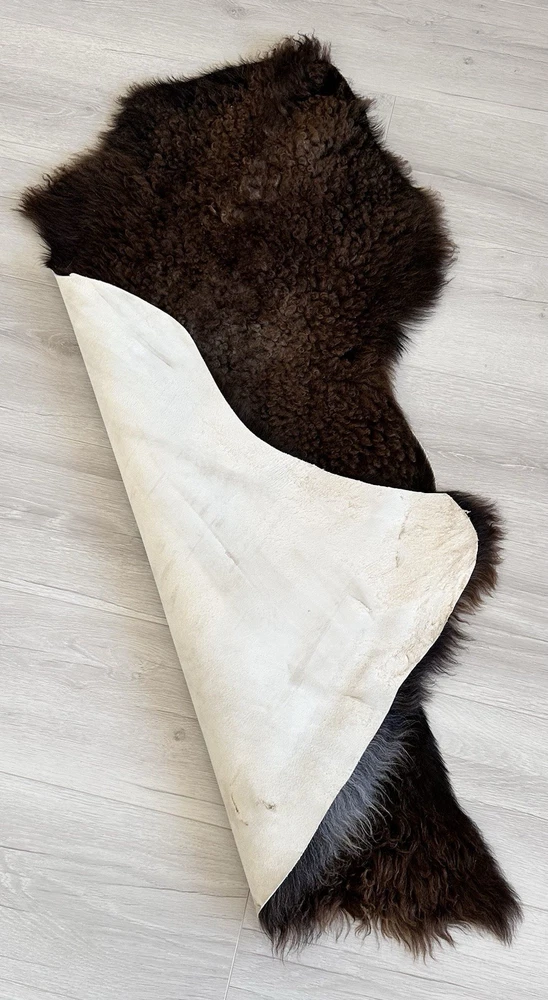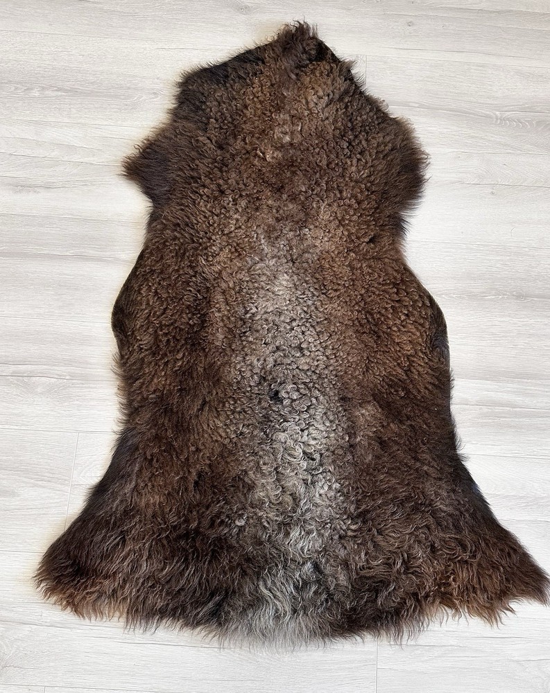 Received beautiful sheepskin with lovely dark colors and patches of lighter toned. Received shipment promptly and I went on to purchase another sheepskin for my mother