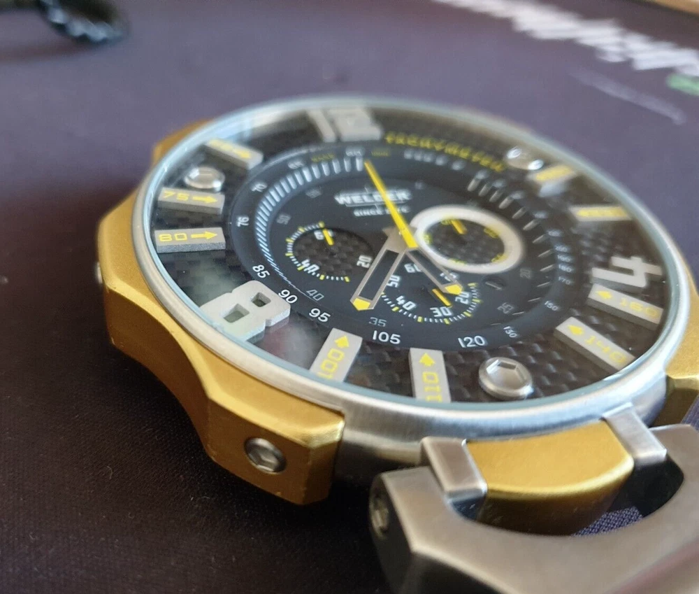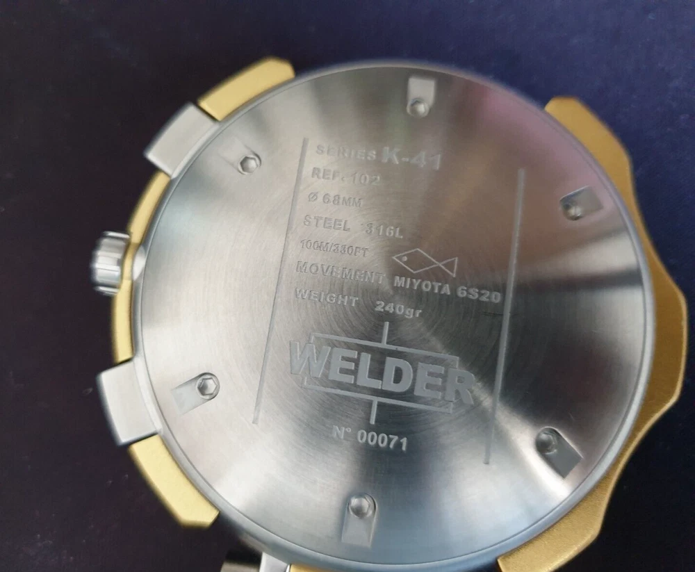 WELDER K41 Ref.102 Pocket watch Trainer Timer Condition 9/10 Excellent Case Material: Steel Movement: Quartz Case Diameter: 68 mm Case Thickness: 18 mm Functions: Countdown, Chronometer, Chronograph, Timer, Hours, Minutes, Seconds Dial: Black Water Resistant 100m/330ft This watch is running well and keeps time well All chronograph functions are working in order * All my watches are 100% original. I personally do all the originality checks of the watches. I do not sell any non-original watches. Please check my feedback. Shipping company to most countries is DHL Express, Fedex or UPS. Your package will be delivered within one week.