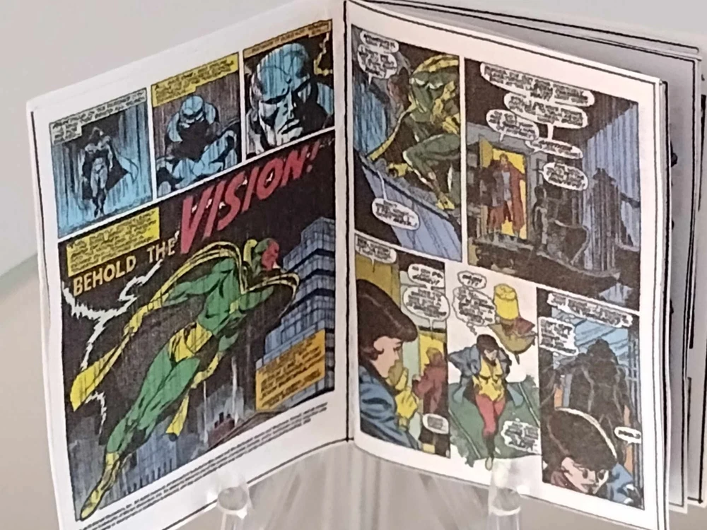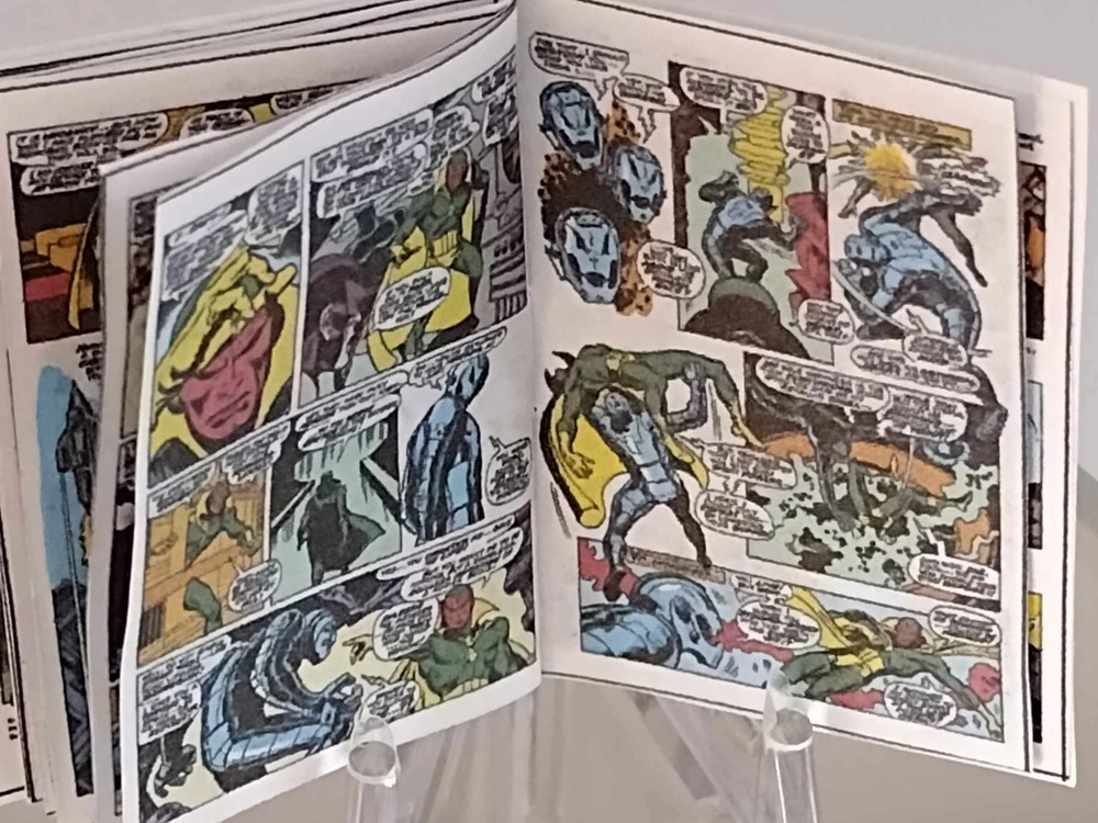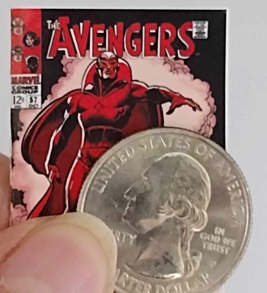 Dollhouse size 1:6 scale MINIATURE OPENING REPLICA COMIC AVENGERS - KANG #57 1968 SILVER AGE 1 REPLICA comic 18 color original pages ALL MINIATURE DOLL HOUSE SIZE perfect for your miniature scene OR DIORAMA approx: 1 3/16 inch x 1 9/16 inch Please note that these miniatures are greatly reduced from the original size. Due to the reduction in size, there is a loss of some clarity of the text. presented on high quality premium materials will look wonderful in your miniature scene or alternatively may be used in a variety or projects including scrapbooking, card making, keyrings and fridge magnets etc Shipping We aim to dispatch all orders within 4 working/business day of receipt for payment Purchases will be shipped via United States Postal service economy shipping does not have tracking International shipping please contact us for international postal rates International buyers are responsible for any customs duties & taxes imposed in the buyers home country. Please take the time to look at our other miniature COMICS, MAGAZINES and miniature items in our store new products added weekly thanks for looking