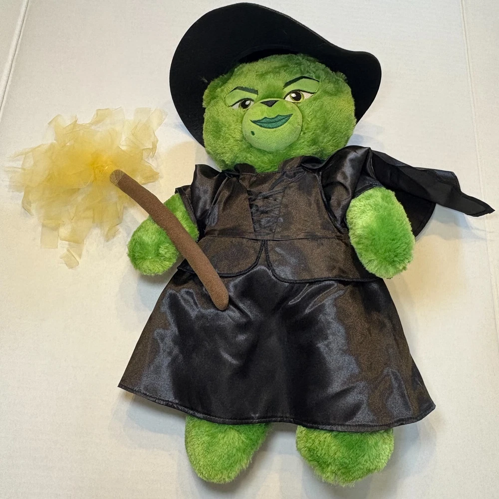 Hello, thanks for checking out my listing! Rare hard to find Elphaba wicked witch Build a Bear from 2020. This green bear is an exclusive Wizard of Oz Elphaba bear including the eyes, mole and the witches broom! Bear does not have a birth certificate or box. All pictures are of the actual item you will receive. Bear comes with outfit and hat. • Item will be shipped within one business day of payment. • Tracking information will be provided after shipment is created.