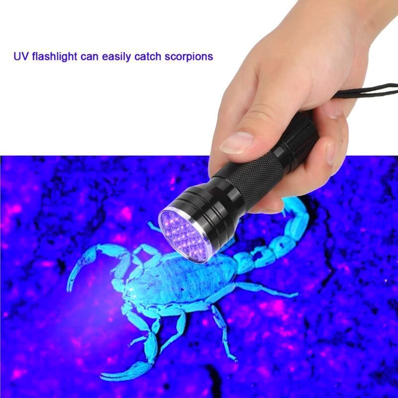 Features: - UV flashlight with 21 - Can check carpet stains left by cats, dogs, and other small animals - Can detect fluorescent agents in cosmetics, clothes, baby products, toiletries, etc. - Can easily catch scorpions - Emits 395nm wavelength for hunting scorpions and minerals - Made of high-quality aluminum alloy - Waterproof and durable - Exquisite anti-skid handle for safe and reliable use - Small and portable - Easy to use with heat dissipation - Suitable for checking notes, credit cards, fluorescent ink, broken glass, crime scenes, and outdoor activities Specification: - Condition: Brand New - Material: Aluminum alloy - Color: Black - Option: with strap, without strap - Length: approx. 10mm/3.9inch (with strap), approx. 9.5cm/3.7inch (without strap) - chip: 395nm (UV) - Power: 390-395nm - quantity: 21 - Battery: 3 x AAA battery (Not Included) - Lifespan: 100000H - Waterproof: IPX-4 Package List: - 1 x Flashlight Please note that the text provided does not contain any additional information related to the product.