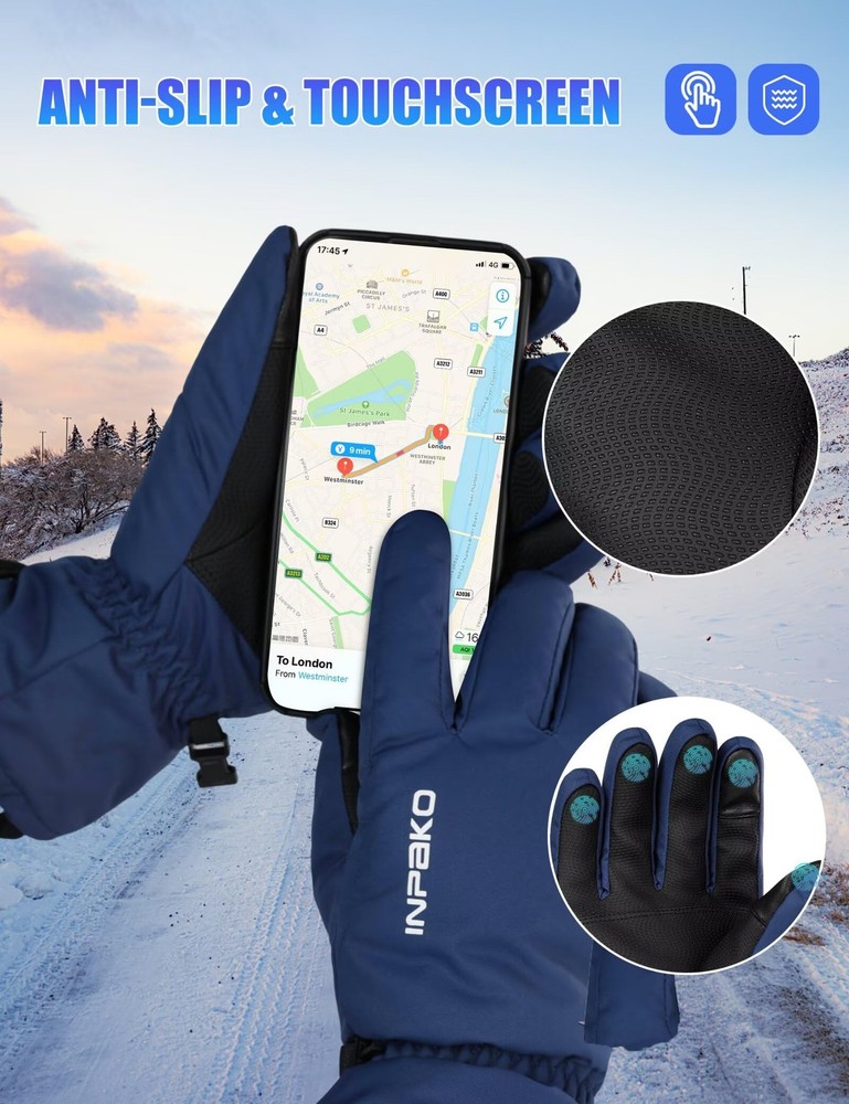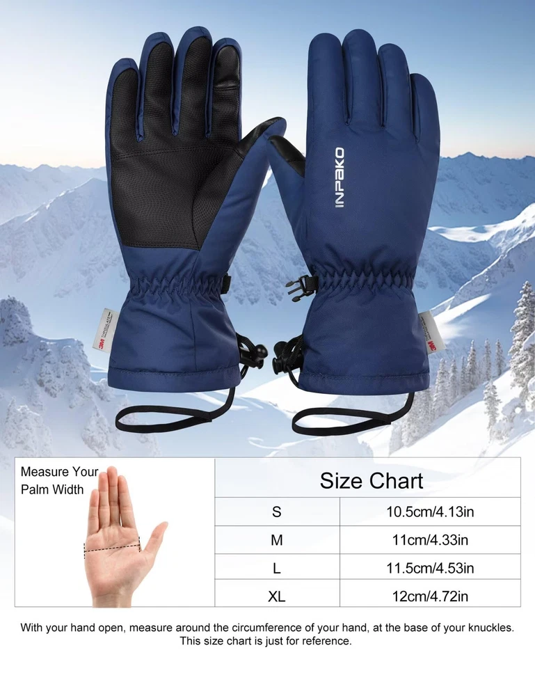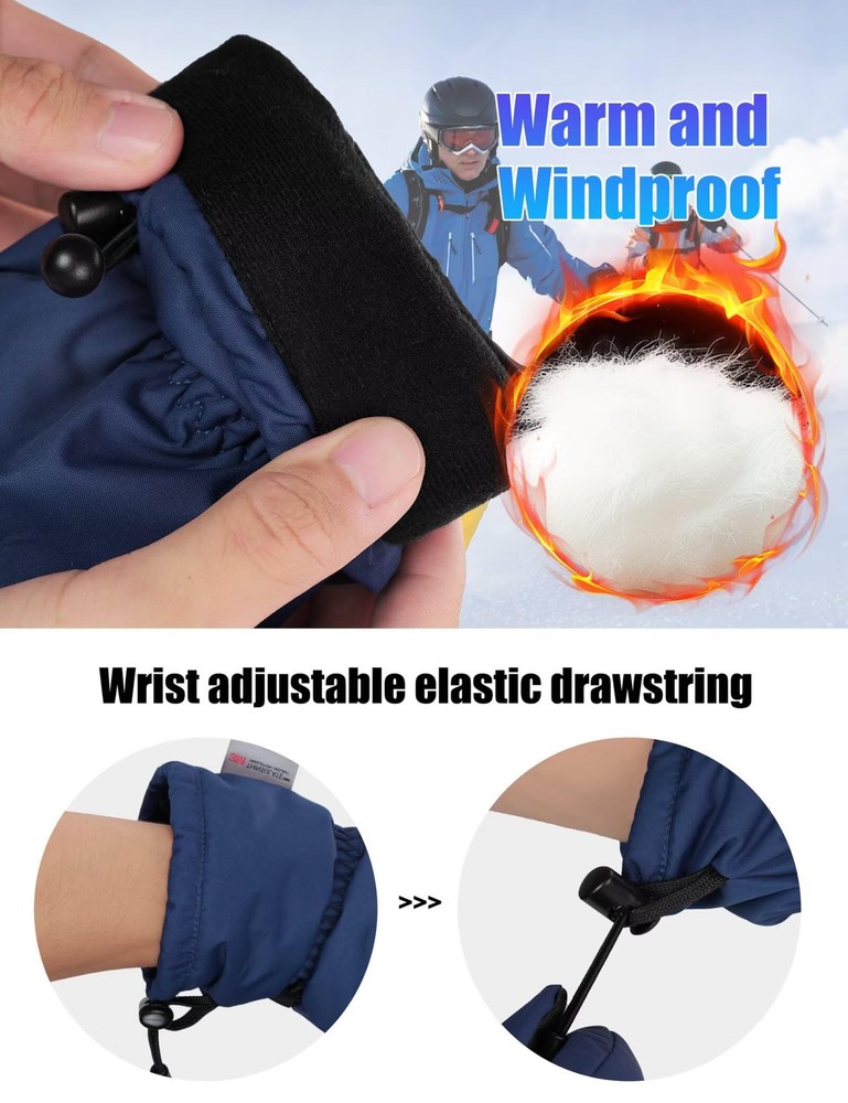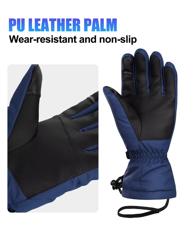 【Warm & Comfortable】: Men's gloves are lined with thermal cotton and 3M Thinsulate cotton, warm and cozy, and the wrists have draw cords, to prevent rain and snow from entering. They are very suitable for skiing, snowboarding, shoveling snow or any cold weather activities. 【Windproof & Waterproof】: These warm winter gloves come with a TPU waterproof bag, ensuring your hands are dry and warm even when playing outdoors in the rain and snow. 【Anti-slip & Wear-resistant】: The thermal gloves palm is made of PU leather, which has good anti-slip properties, allowing you to easily grab the ski poles and improve skiing safety. 【Anti-lost Design】: There is a connecting buckle in the middle of the two ski gloves. When the gloves are not in use, the gloves can be buckled together to avoid losing one glove. 【Warrant】: We provide comprehensive pre-sales and after-sales services to ensure that you purchase satisfactory products. If you have any dissatisfaction, please feel free to contact us.