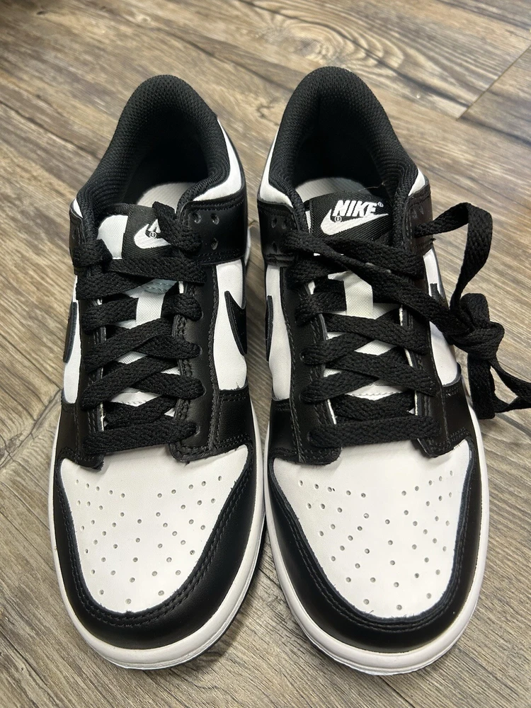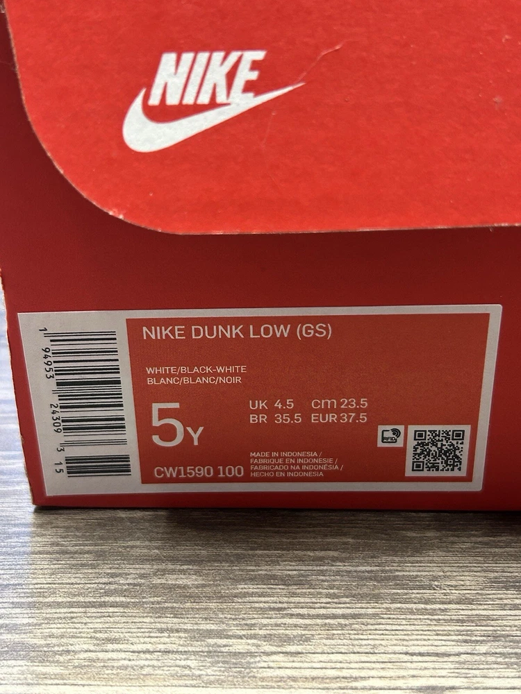 Size 5 - Nike Dunk Low Black White YOUTH. Condition is Pre-owned. Shipped with USPS Ground Advantage.