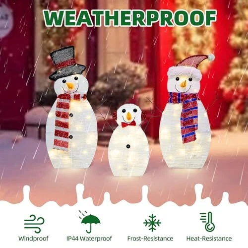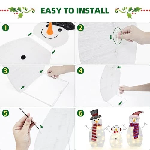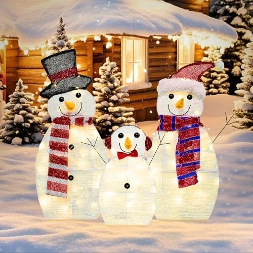30 Days Return Policy Fast Delivery Trusted seller Christmas Lighted Snowman Family Outdoor Decoration, 60 LEDs 3-Piece 2D Snowman Decor for Xmas Indoor Outdoor Garden Yard Lawn Festive Holiday Decor Product Description ⛄Material and Dimension: This Christmas snowman outdoor decoration is made of a durable metal frame and covered in soft and glittering waterproof fabric for a festive look. Father: 31.5” H x 21.3” L, Mother: 27.7” H x 20.5” L, Baby: 18.1” H x 15.7” L. ⛄60 LED Pre-lit Lights: The 3-piece set snowman decoration is designed in two-dimension. It has 60pcs warm white LED lights, which are strung with strong metal wires. Well-arranged lights make the snowman cute and attractive at night. ⛄8 Flashing Modes: The lighted snowman family decoration has 3 led wires with separate battery boxes(batteries are not included), you can independently control the snowman’s lighting. T are 8 flashing modes to choose. ⛄Easy Assemble and Storage: This snowman outdoor decoration is easy to set up and space saving storage. And it comes with 6 ground nails and 6 plastic ties for more stable and convenience. ⛄Indoor or Outdoor Use: It's ideal for your Christmas tree, porch, lawn, yard, party or any room and event that needs a bright and lovely decoration. A perfect gift for the upcoming Christmas Festival! Shipping Returns Payment Shipping Shipping is FREE to all addresses other than APO/PO boxes in the lower 48 states. All our stock ships from US-based warehouses. Shipped via USPS or UPS (depending on location and package weight) Unless stated otherwise, all orders will ship within 24-72 hours of your payment being processed. Check our feedback to see the great reviews of FAST shipping we offer. Returns As our valued customer, we will do our best to make sure the product you receive arrives to you on time and as expected. If you are not satisfied with your purchase, please contact us within 30 days of receiving your order to process a return. Payment We currently accept payment via eBay managed payments only. Once payment is cleared, we will dispatch your shipment within 1-3 business days. Please refer to the "Shipping" tab for more information regarding shipping speed to your destination.