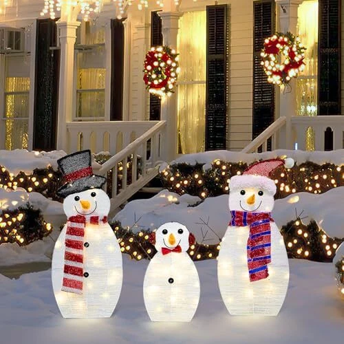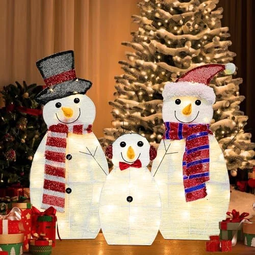 Рождественский освещенный снеговик семьи уличное украшение, 60 светодиодов 3 изделия 2D