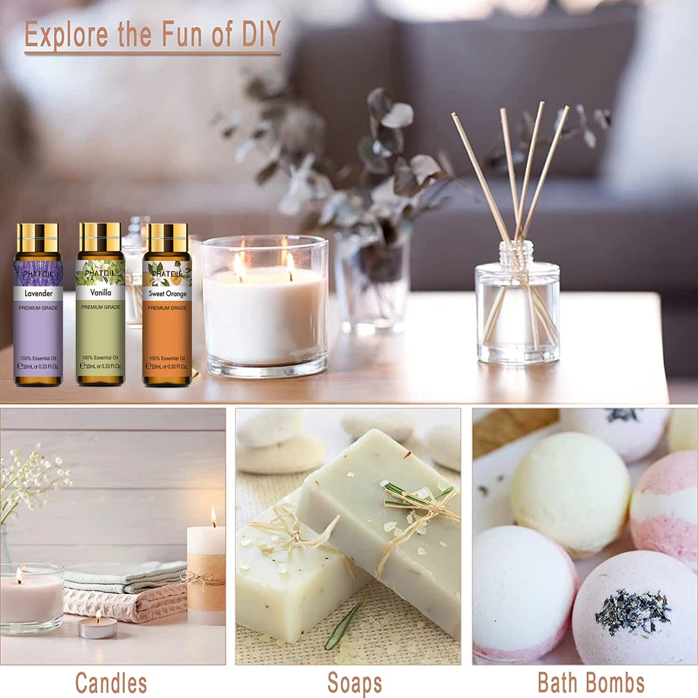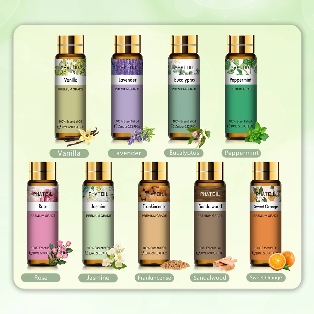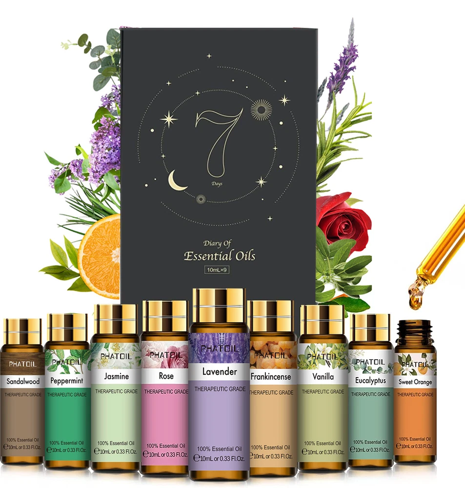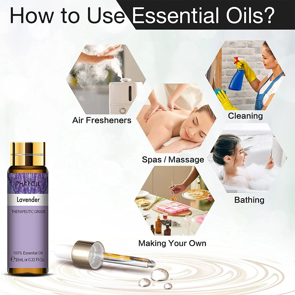 Similar Items Description About this item: Our Premium Quality Essential Oils Set includes 9 pure essential oils (Lavender,Jasmine,Eucalyptus,Vanilla,Peppermint,Sandalwood,Frankincense,Sweet Orange,Rose) and 2 glass droppers. Each essential oil is carefully sourced to ensure the highest quality for maximum effectiveness. Enjoy long-lasting scents that will transform your home, office into a haven of peace and relaxation. Our essential oils have a broad range of applications and are frequently utilized in a variety of occasions such as massage, aromatherapy, diffusers, air freshening, and even in creating handmade soap, scented candles, bath bombs. Comes in an elegant and stylish package, it is a perfect gift idea for your families and friends. This essential oil set is particularly great for individuals who are just starting to explore the world of essential oils, as it allows them to try out various scents and discover the one that resonates with them. Name: PHATOIL Essential Oil Set Capacity: 10ml/pc Quantity: 9pcs/set(Lavender/Jasmine/Eucalyptus/Vanilla/Peppermint/Sandalwood/Frankincense/Sweet Orange/Rose) Feature:you can DTY the essential oils you want, there are 12 usually collocations(Breathe/Focus/Skin Care/Hair Care/Aphrodisiac/Insect Repellent/Remove Anxiety/Energise/Stress Relief/Immune Booster/Sweet Dreams/Sleep Easy) Benefits of diffusing essential oils: 1.Clears the air of dust and bacteria 2.Opens the airways 3.Affects mood 4.Absorbed easily by the body Essential Oil Collocation: Breathe: Lemon+Peppermint+Eucalyptus Remove Anxiety: Lavender+Geranium+Sandalwood Energise: Lavender+Geranium Stress Relief: Lavender+Bergamot+Clary Sage Immune Booster: Tea tree+Eucalyptus+Lemon+Lavender Sweet Dreams: Rose+Clary Sage Sleep Easy: Lavender+Bergamot+Sandalwood How Best To Use These Oils: There are many, many ways to use our Essential Oils, here are just a few... Oil Burners - One of the most popular ways is using them with an oil burner. Adding a few drops to your oil burner will create a lasting beautiful aroma, you can also mix oils to create your own smell. Bath - Adding a few drops of our oils to your bath creates a heavenly, natural and pure aroma, and is proven to be a highly effective way get the most our of essential oils. Massage - Our oils are strong, so please do not use them directly on your skin. Adding a few drops to a carrier oils (such as Grapeseed oil), and then massaging it on to your forehead, palms, neck, back, feet or other affected areas work wonders. Making your own - Many of you like create your own soaps, candles and beauty products, and these oils are perfect for that. They are of therapeutic grade, natural, pure and all hand made in the UK, making them ideal for you creative souls out there who make your own products. Others - Other popular ways apart from the above include, diffusers, on your pillow at night, meditation, car air fresheners and in steam / saunas. Precautions For external use only and avoid contact with eyes. Do not use 100% pure essential oil only. You need to add base oil to dilute. Keep tightly sealed and store in cool, dry place. Discontinue if irritation occurs. If pregnant or nursing, consult your doctor before use. Package Include: 1x 10ml Lavender Essential Oil 1x 10ml Jasmine Essential Oil 1x 10ml Eucalyptus Essential Oil 1x 10ml Vanilla Essential Oil 1x 10ml Peppermint Essential Oil 1x 10ml Sandalwood Essential Oil 1x 10ml Frankincense Essential Oil 1x 10ml Sweet Orange Essential Oil 1x 10ml Rose Essential Oil 2x Droppers Detail Image Payment eBay Accepts The Following Payment Methods: 1.Visa 2.Mastercard 3.PayPal 4.Apple Pay 5.Google Pay 6.American Express Card Shipping All the items will be dispatched within 2 business day after the payment is clear. We are not responsible for any custom duty or import tax. Contact Us We will leave Positive Feedback after receiving the payment. Please contact us if you are not satisfied with the item after receive it. If there is any question about our products, please feel free to contact us by ebay message instead of email, we will reply all the ebay messages within 24 hours.