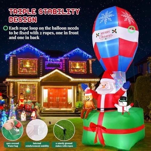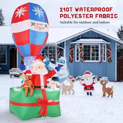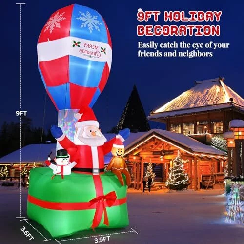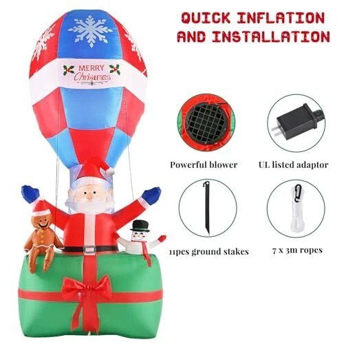 30 Days Return Policy Fast Delivery Trusted seller 9 FT Christmas Inflatables Outdoor Decoration, Colorful Dynamic LED Lighted Santa with Gingerbread Man and Snowman, Gift Box with Giant Balloon Blow Up Yard Decorations for Xmas Product Description Attractive Christmas Decoration: 9 ft Christmas inflatables with smiling Santa, his pals sitting on a gift-box and a big hot air balloon will light up yard while adding a beautiful and joyful holiday atmosp for you and your family. This eye-catching Christmas inflatable decorations are perfect for outdoor yard garden lawn decorations Color Changing LED Lights: Our Christmas inflatable outdoor decoration are built-in with one colorful dynamic LED light behind santa and 7 sets of extra bright white LED lights. It will be visible even on the darkest night. With this Christmas decorations outdoor your courtyard will become a popular and fun photo spots Adequate Stability: This outdoor Christmas decorations come with 11 stakes, 7 ropes and 2 water bags. Each rope loop on both sides of the balloon needs to be fixed with 2 ropes, one in front and one in back. So you can feel good about making your yard a winter wonderland Quick Inflate with Powerful Blower: Our Christmas blow up yard decorations are equipped with a powerful blower, just plug it in,then santa, gingerbread men, snowmen, gift boxes and balloons will be automatically inflated in a few minutes, a giant christmas decorations outside will stand in your yard and create a festive atmosp High Quality Fabrics: The inflatable Christmas decorations are made of 210T water-proof materials, which is against rips and tears, weatherproof and fade resistant. Excellent stitching process improves the durability of the outdoor decorations, which can be kept in good condition for the next Christmas Shipping Returns Payment Shipping Shipping is FREE to all addresses other than APO/PO boxes in the lower 48 states. All our stock ships from US-based warehouses. Shipped via USPS or UPS (depending on location and package weight) Unless stated otherwise, all orders will ship within 24-72 hours of your payment being processed. Check our feedback to see the great reviews of FAST shipping we offer. Returns As our valued customer, we will do our best to make sure the product you receive arrives to you on time and as expected. If you are not satisfied with your purchase, please contact us within 30 days of receiving your order to process a return. Payment We currently accept payment via eBay managed payments only. Once payment is cleared, we will dispatch your shipment within 1-3 business days. Please refer to the "Shipping" tab for more information regarding shipping speed to your destination.