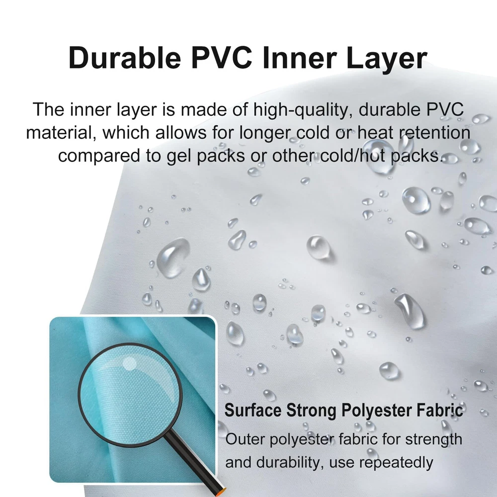 Perfect Size: [Medium (9 inches) ice pack is suitable for children, teenagers, adult men and women, and the elderly. Please choose the right size ice pack according to the size of the painful area Leak-proof Cap with Large Mouth: The ice pack is made of high-quality materials. Screw cap design with large opening and rubber sealing ring. Easy to fill with ice cubes and strong leak-proof ability. Soft textiles make the ice pack keep cold and hot compresses much longer than gel packs Easy to Use: When cold compress, add the right amount of ice cubes and water, and apply the ice bag to the desired area. When Hot compress: Add hot water to the ice pack.(Note: Do not use boiling water for heat therapy. The temperature is 50-60℃/122℉-140℉.) Hot Cold Therapy: Cold compress is suitable for sports injuries, fever, headache, swelling, toothache, sprain, strain, bruise, etc., and hot compress is suitable for relieving muscle soreness, menstrual cramps, etc Easy to Carry: The ice pack bag is foldable, lightweight, waterproof, and flexible to carry. You can easily carry it wherever you go. Ice packs can be used to relieve pain from sprains caused by exercise, headaches caused by hangovers during the weekend or holidays, and muscle soreness caused by shoulder and neck fatigue due to work