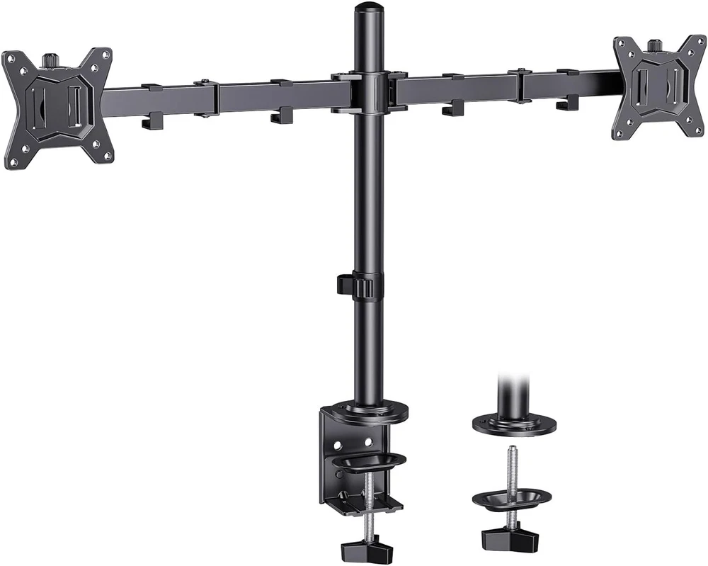 Space-Saving Dual Monitor Desk Mount with C-Clamp & Grommet - Adjustable Design ‹ › ‹ › ‹ › ‹ › ‹ › ‹ › ‹ › ‹ › ‹ › Space-Saving Dual Monitor Desk Mount Features: Robust stability crafted from high-quality cold-rolled steel with a thicker dual-layer base. Each arm securely holds up to 26.5 lbs without wobble or sag. Wide 33" arm span and tall 16.3" pole accommodates two 34" ultrawide monitors. Compatible with VESA patterns 75x75mm and 100x100mm. Ultimate flexibility with adjustable +/-90° swivel, +/-45° tilt, and 360° rotation. Integrated cable management for a clean workspace. Two installation options: C-clamp or grommet mount. Benefits: Enjoy unparalleled stability without the worry of shaking or dropping monitors. Transform your workspace with adjustable viewing angles to reduce neck and eye strain. Free up desk space for other essential devices, enhancing efficiency. Simple and customizable setup for individual preferences. U.S.-based product support team available for any inquiries. Why Choose Our Dual Monitor Desk Mount? Upgrade your workspace with our Space-Saving Dual Monitor Desk Mount that promises unparalleled stability and versatility. Crafted from high-quality materials, this robust mount securely holds your monitors while offering customizable positioning for ergonomic viewing. Whether you're working, gaming, or multitasking, enjoy the freedom to adjust your screens with ease. With integrated cable management and dual installation options, you can create a clean and efficient workspace that maximizes focus and productivity. Don’t compromise on comfort - choose our monitor mount and elevate your desktop experience! Shipping Free & Fast Shipping - We offer free shipping to most of the USA with a normal delivery time of 3-7 days. However, due to the current situation, additional delivery time (up to 3 weeks) may be required for some items. Alternative Carriers - We may use alternative carriers (e.g. USPS, FedEx, UPS, etc.) to ensure your package arrives safely and on time. Due to the use of multiple carriers, we are unable to provide a tracking number automatically. Handling Time - Orders are processed and shipped within 1-2 business days of receiving cleared payment. Shipping Restrictions - Shipping to Alaska, Hawaii, Puerto Rico, Guam, and other US territories may incur shipping charges or delivery restrictions. Please contact us before ordering, or your order can be refunded/cancelled. State Restrictions - There may be restrictions based on your state of purchase. For example, certain items may not be shipped to California due to state regulations. Contact for Tracking Updates - If you require tracking updates or have any concerns about the delivery of your order, please feel free to contact us, and we will be happy to assist you. Return 30-Day Hassle-Free Returns - We want you to be completely satisfied with your purchase. If you are not, you can return the item within 30 days of receiving it for a full refund or exchange. Easy Return Process - To start a return, simply contact us and we will provide you with a prepaid return shipping label and detailed instructions. Restocking Fee - There are no restocking fees for returns. However, the buyer is responsible for return shipping costs if the return is not due to a seller's error. Refund Processing Time - Refunds will be processed within 5 business days of receiving the returned item in its original condition. Payment We accept all major credit cards, PayPal, and Apple Pay for your convenience. Your payment information is secure and encrypted to ensure a safe and seamless transaction. Please complete your payment within 3 days of purchase to avoid any delays in shipping. Feedback Your feedback is extremely important to us. We strive to provide the best products and customer service possible. If you are satisfied with your purchase, please take a moment to leave us a positive review. If you have any concerns or issues with your order, please contact us before leaving negative feedback. We are committed to resolving any problems and ensuring your satisfaction. Contact Us If you have any questions or concerns, please feel free to reach out to our customer support team. You can contact us through the eBay messaging system. We are available Monday to Friday, 9:00 am to 5:00 pm EST, and we will do our best to respond to your inquiry within 24 hours. Thank you for supporting our small family business! UPC: Not Set Unit Quantity: 7.39 Item Height: Dual Monitor Desk Mount Item Length: Dual Monitor Desk Mount Item Width: Dual Monitor Desk Mount To Fit Screen Size: Not Set VESA Size: Not Set Features: Not Set Compatible Product Line: Not Set Brand: Unbranded Type: Desk Mount Number of Monitors: 2 Color: Black Adjustment: Tilt & Rotate MPN: Not Set Unit Type: lb Country/Region of Manufacture: Not Set Manufacturer Warranty: Not Set