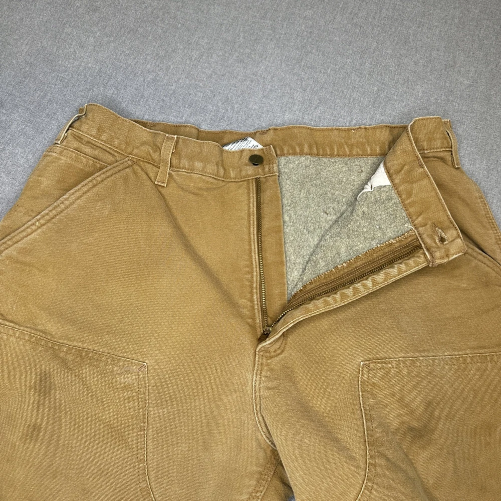 These Carhartt B157 BRN work pants are perfect for both casual and workwear occasions. Made of durable duck canvas material with a sherpa lining, they are heavyweight and perfect for winter, fall, and spring seasons. They come in a size 38 waist and hard to find 34 inseam. Pants are in excellent structural condition with no rips, tears or fraying. There are stains and fading on several spots on the pants, see photos for details. Fast one day handling. Shipped via USPS ground advantage. Unsatisfied for any reason? 30 day return policy offered with no questions asked. Thanks for looking!