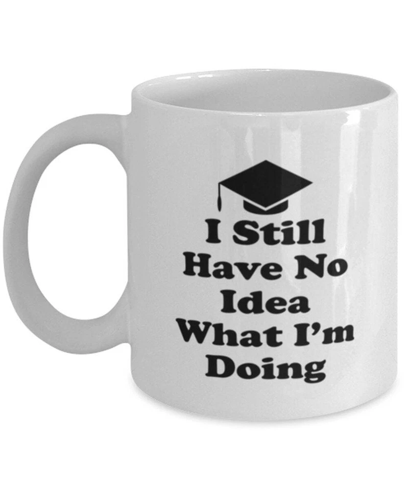Funny Graduation Coffee Mug I Still Have No Idea What I'm Doing Graduation Mug Product Details.. This high quality 11oz. ceramic white mug has a premium hard coat that provides crisp and vibrant color reproduction sure to last for years. Perfect for all hot & cold beverages. The highest quality printing possible is used. It will never fade no matter how many times you wash it. Material: 100% Ceramic. Print both sides. Dishwasher and Microwave Safe. High Gloss + Premium White Finish. Printed in the U.S.A. Personalized & Custom. We support personalized and custom mug to add custom, when placing an order, you can add notes to the "order note" in shipping address section. Also you can contact us directly via message. Shipping Info. Ready to ship in 1 to 2 business days, All products are made-to-order and proudly printed in the United States. Shipped by USPS and DHL, You will receive your order in 5-7 days. Replace & Refund. All products are defective during shipping broken, chipped will be replaced free of charge. You are not satisfied with the product, we will refund 100% money to you. If any other issues arise, please do not hesitate to message, we would be more than happy to assist you.