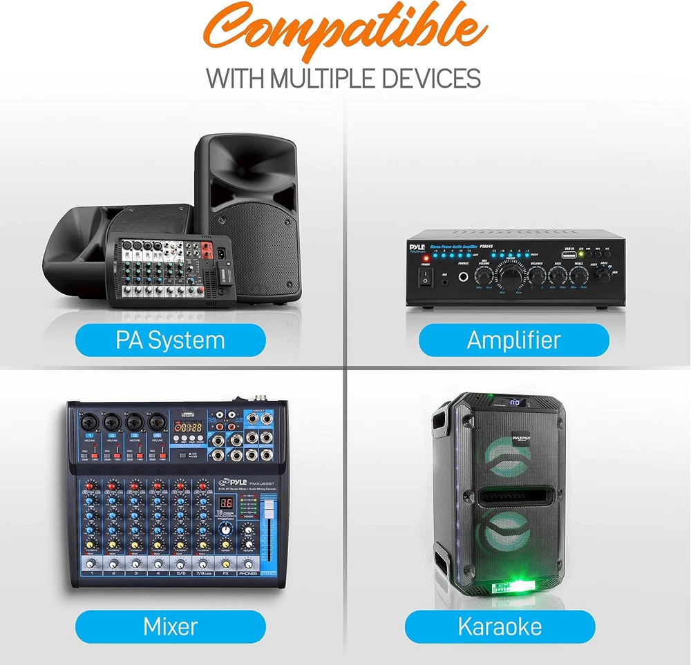 Store New Arrivals Add to Favorite View Feedback Contact Dual Channel Wireless Microphone System - Portable VHF Audio Mic Set with Clip Lavalier Lapel, Handheld, Headset, Transmitter, ¼’’ Cable, Power Adapter - for Karaoke, PA DJ - Pro PDWM2115 Description Item model number PDWM2115 Product Dimensions 9.5 x 4.75 x 14.25 inches Country of Origin China Item Weight 1 pounds Batteries 2 AA batteries required. Is Discontinued By Manufacturer No Dual Channel: This black VHF handsfree wireless microphone system by PYLE Pro has dual frequency channels and gives you 50 meters of operation range for cordless singing to karaoke music and mobility for energetic on stage performances DUAL OUTPUT JACK: The receiver base features a balanced XLR output jack to hook up your sound mixer / stereo or speaker and an AUX 1/4" phone plug for other external devices. It also has dual independent antennas and RF/AF signal LED indicator light Independent mic volume control: each dynamic or Lav mic features its own volume control so you can balance the vocals as desired for a karaoke experience that both kids and adults will enjoy. Perfect for professional engagement, conference, DJ party What's in the box: The package includes a receiver, clip lavalier lapel, handheld and headset mic, transmitter, 1/4 audio cable, and 4 'AA' Battery. The device can be used outdoor and indoor like a school classroom, church or at home for personal use WORRY-FREE SHOPPING: With the Pyle PDWM2115 we are confident of the quality of our product, therefore, we offer a 30 day money back no questions asked. VHF Wireless Microphone Receiver System with Independent Volume Control Includes Belt Pack Transmitter, Headset, Handheld and Lavalier Microphones Features: VHF Narrow Band Receiver Dual Frequency Design (Channel A/B) High Signal/Noise Ratio Performance Broad Frequency Response Range & Low Distortion Independent Adjustable Volume Control Volume Control Indicators and Status Signals Audio Output Jacks Dual Independent Channel Antennas RF Signal and AF Signal LED Indicators Radio Frequency and Audio Frequency What's in the Box: Receiver Base Wireless Handheld Microphone Headset Microphone Lavalier Microphone Beltpack Transmitter 1/4'' Audio Connection Cable (4) 'AA' Batteries Transmitter Specifications: RF Power Output: >13dBm Harmonic at higher Degree: 30KHz Modulation Pattern: FM Power Current: 70dB RF Image Rejection: -75dB Neighboring Channel / Interference: >70dB Audio Dynamic Range: 95dB T. H. D: 50 meters Power Source: AC 120V / 60Hz Dimensions: 12. 7” x 8. 5” x 1. 9” -inches Sold as: 1set Weight: 3. 85 lbs. ABOUT US We offer the best prices around on high quality products. Our E-store includes media such as books, movies, music and games while offering electronics, toys, sporting apparel, clothing, tools, general home, garden items and more. SHIPPING We are always working hard to ensure your package arrives as soon as possible. Please understand that some factors like weather, high postal traffic, and the performance of shipping companies are outside of our control. We offer free shipping to the lower 48 states and ship within 2 business days of payment, usually sooner. We do not accept P.O. Boxes. Please provide a physical address. For shipping outside of the continental USA, we only use eBay's Global Shipping Program.The item is shipped to KY and then sent to the rest of the world. International customers are responsible for all duties and taxes. Continue to check out in order to calculate costs for shipping the item to your country. Messages regarding eBay's Global Shipping Program MUST be directed at eBay EXCLUSIVELY. RETURNS We offer a 30-Day Return Policy on items which you are not completely satisfied with. You have the option for a full-refund or an exchange of the item. No returns are available on items shipped outside of the USA. PAYMENT We accept PayPal. CONTACT US This page content is yet to come Please ad us to your favorite seller and visit again later Thank You CUSTOMER SATISFACTION We try our very best to make sure every customer is completely satisfied. If there's a problem, message us! We're happy to help. WE ACCEPT Copyright © 2021 AutoDS. | All Rights Reserved