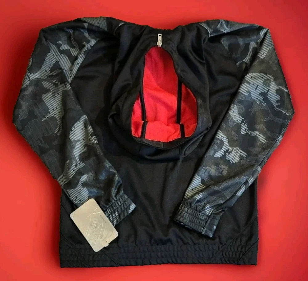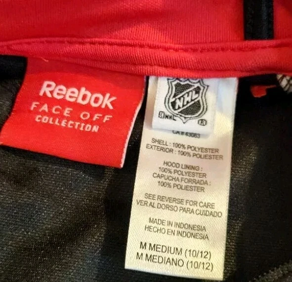 The Reebok Youth Chicago Blackhawks Face Off Hoodie Full Zip Jacket in size M is an officially licensed product featuring the logo of the National Hockey League (NHL) team, the Chicago Blackhawks. Designed for boys, this black hoodie is perfect for young fans looking to support their favorite player, Patrick Kane, during the regular season. The full zip design allows for easy layering and the Reebok branding ensures quality and authenticity.