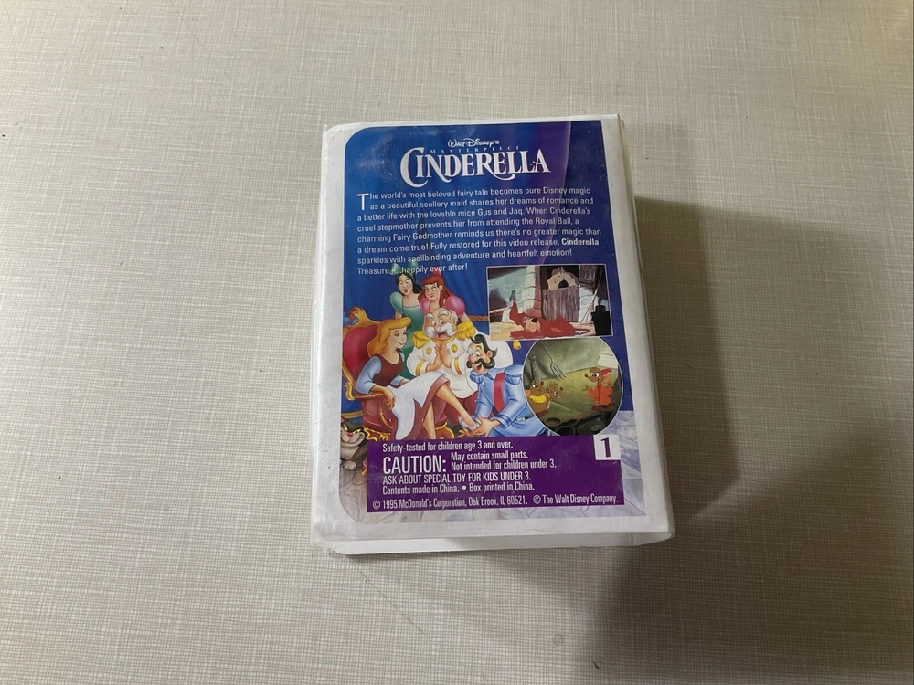 This is a rare and special McDonald's Disney Masterpiece Collection Cinderella 1995 Happy Meal VHS Toy. It includes a custom bundle of toys and is part of the Fast Food & Cereal Premiums category. The toys are in excellent condition and are perfect for collectors and fans of Cinderella.