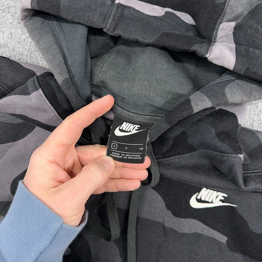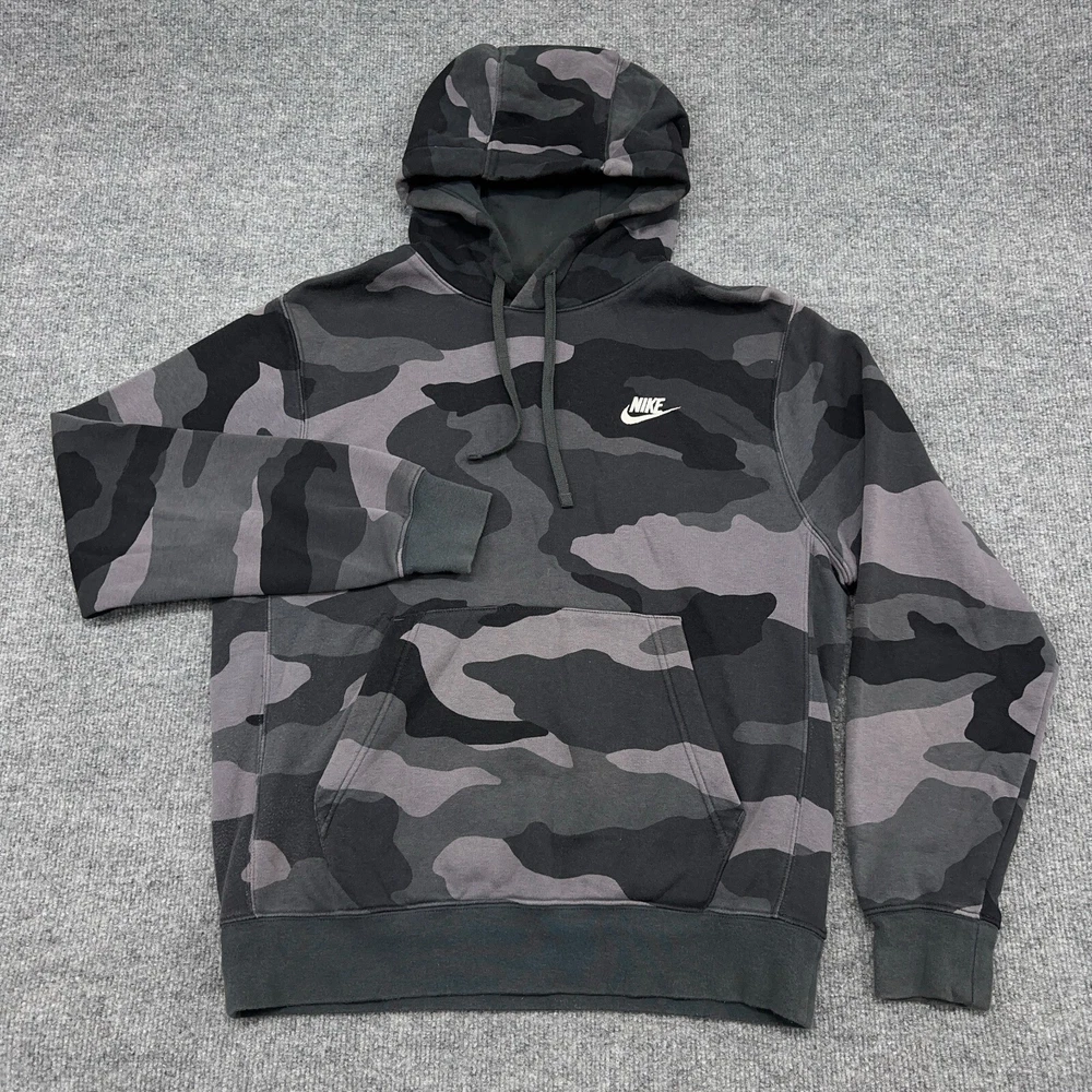 Nike Hoodie Mens S Gray Camo Sportswear Club Fleece Sweatshirt Logo In good condition. Please see photos for measurements.