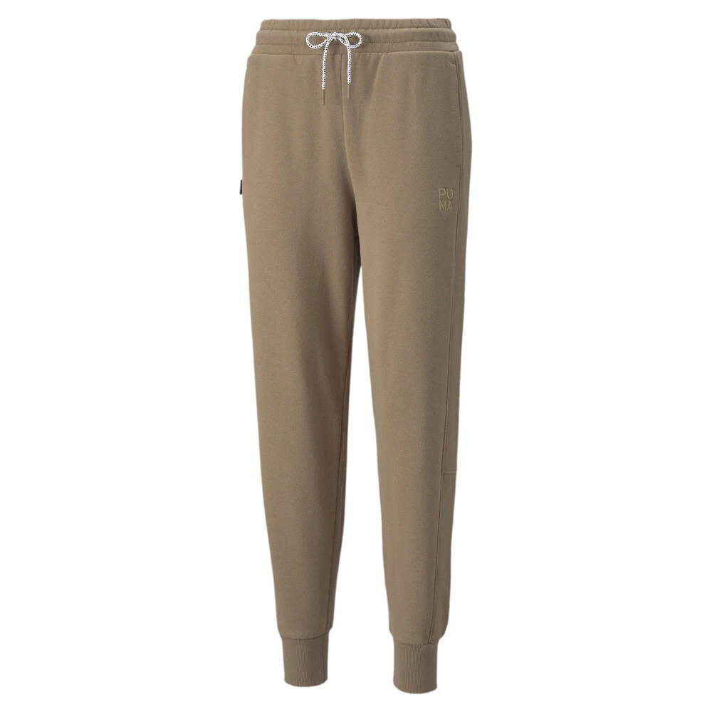 Infuse Drawstring Sweatpants Product Details Side pockets Elasticated waistband Embroidered PUMA Infuse Wordmark at left thigh 100% cotton Made using conscious cotton fabrics, with a relaxed fit, comfortable cut lines, side pockets for storing belongings, standout stitching, ribbed cuffs and elegant brand elements, these sophisticated sweatpants will have you lounging like a queen. Additional Details Color: Brown Occasion: Casual Gender: Womens Age: Adult Brand: Puma
