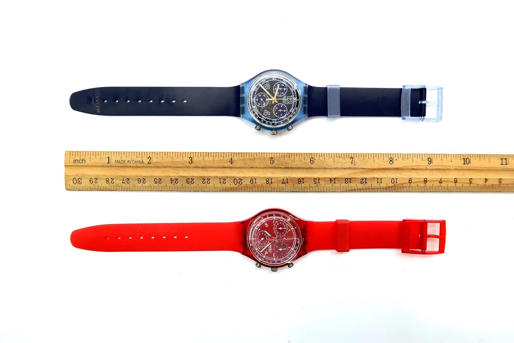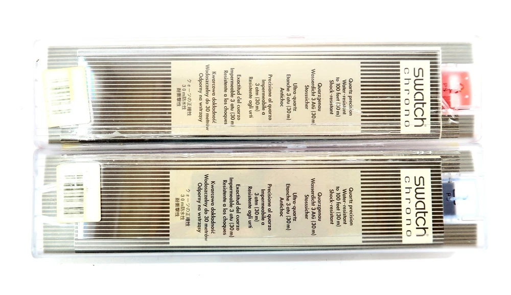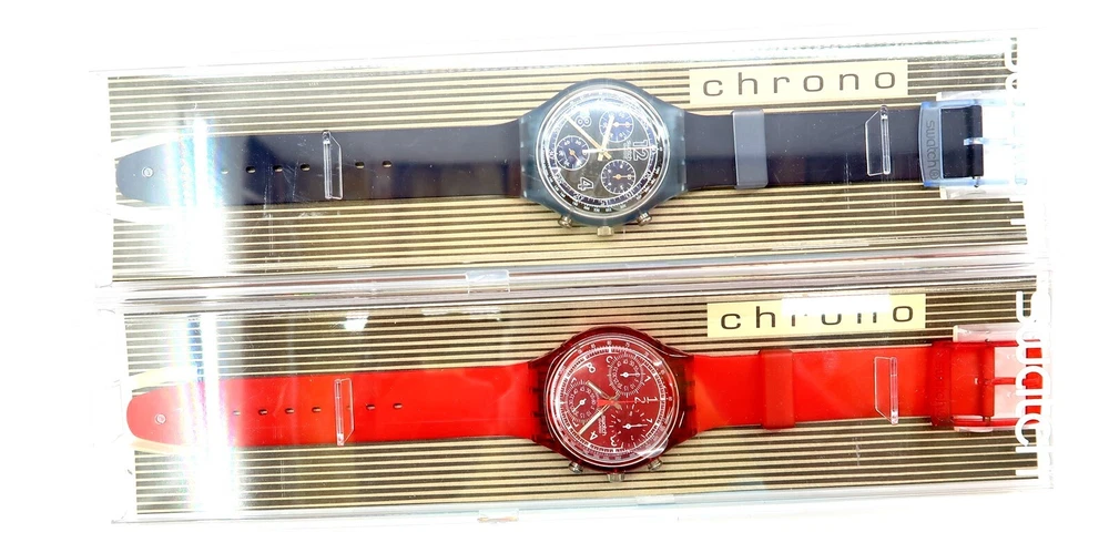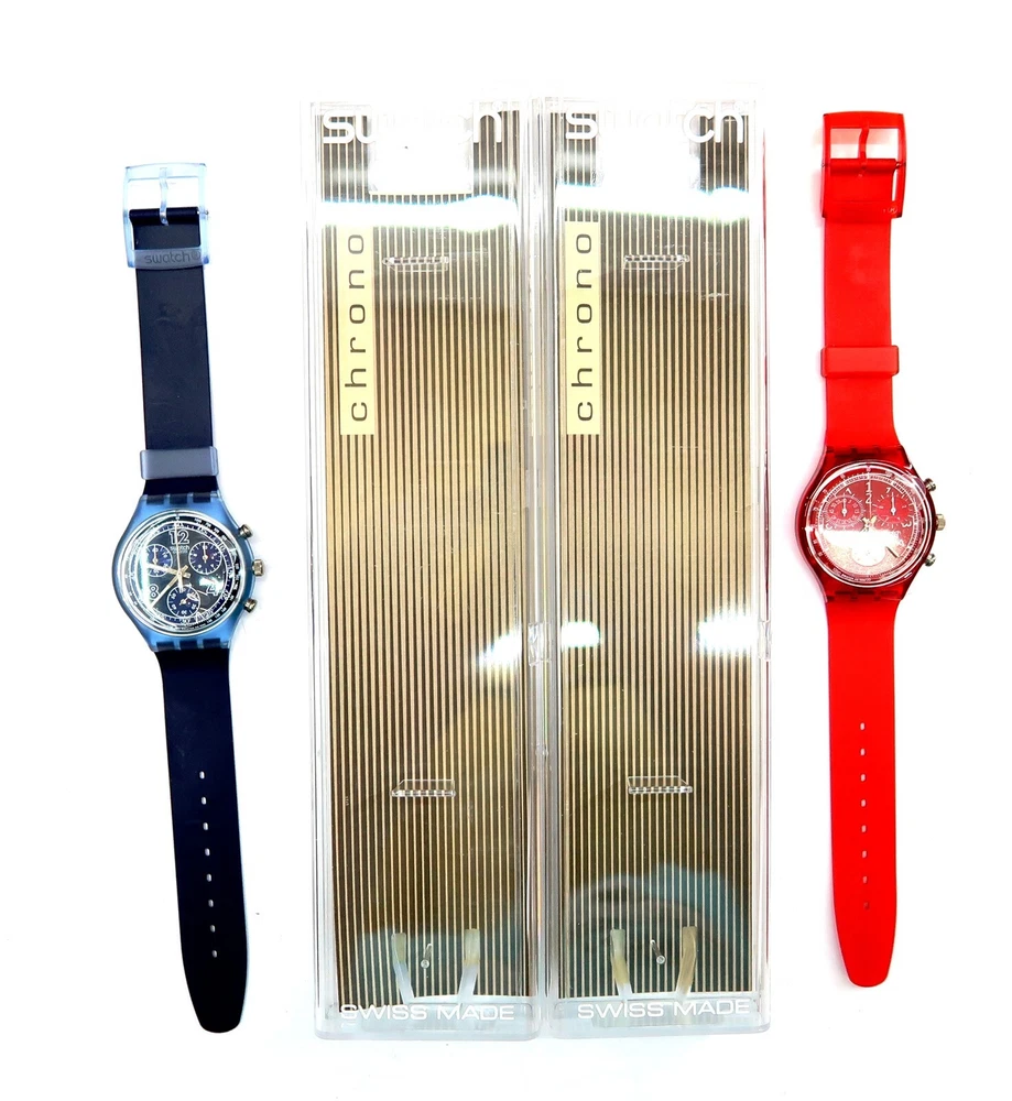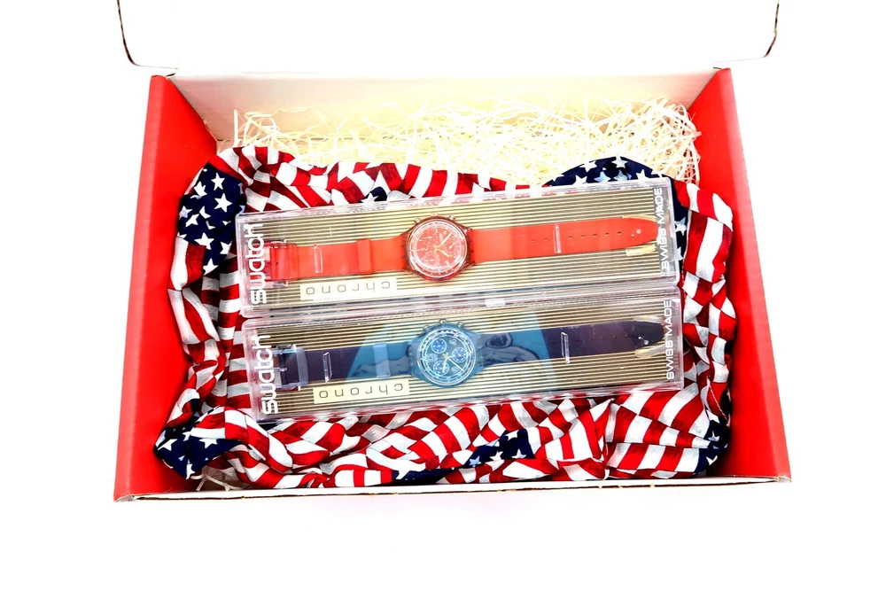 Swatch Watch 1996 ELECTION SET SCN117PACK with SCR101 Le Rouge & SCN117 Le Bleu This eBay listing is for a New Old Stock classic SWATCH WATCH that comes as you see pictured in the listing and noted above. This watch is brand new and never used before and comes with the original case and paperwork. If you collect classic Swatch Watches, then please check out my other listings in my ebay store for many more great Swatches!! I just picked up close to 800 NOS Swatches from a local auction where I'm told the consignor had one of the largest Swatch watch collection in the United States. This was their 3rd and final auction of Swatches. In total, I purchased close to 1500+ Swatches!! Many of the watches are Special Editions, Limited Editions, Boxed Sets, Scarce and rare models plus other vintage Swatches as well. I will remove all of the old Swatch batteries and will replaced them with brand new batteries to verify that they are all are all in good working condition unless noted below. Please note that vintage and retro Swatches are on the smaller size compared to modern style watches. Most standard Gents (mens) watches have a 33mm-34mm case. I will try to include a picture with each new listing showing the watch next to a standard ruler so that you can see the true size of this collectible Swatch watch. Swatch name : 1996 ELECTRON SET Model : SCN117PACK New Battery : Yes (due to age, the original battery was removed with a new battery installed) Features/Notes : Both Swatches Works Great! Limited Special Packaging Swatch Watches. Included Swatches: SCR101 "Le Rouge" Chrono Swatch Watch and SCN117 "Le Bleu" Chrono Swatch Watch. Both Swatches issued in 1996. Includes Time to Vote, Clinton/Gore 96, Dole/Kemp political buttons. Limited Numbered 2 of only 96 made!! Rare limited run set!! USA Release, Issued in 1996. Both Chronograph features are in working condition as well. Seller Location Reference - Electronics Row BID IN CONFIDENCE – CHECK MY FEEDBACK! My goal is your satisfaction. I leave positive feedback right after the payment is received for all orders!! If you plan to leave anything less than positive feedback and 5 stars - please let me know so that I can work out any problems that you may have. I aim to please!! SHIPPING & HANDLING FOR US BIDDERS We ship ASAP upon payment as noted above within 1 business day 99% of the time!! We normally pack up your new treasures 2 - 3 times a day and ship using USPS and Fedex Ground so that you get your items in a timely fashion. As always - there is no charge for local pickup on any of my items!! SHIPPING AND HANDLING FOR INTERNATIONAL BIDDERS Import duties, taxes and charges are not included in the item price or shipping charges. These charges are the buyer’s responsibility. Please check with your country’s customs office to determine what these additional costs will be prior to bidding/buying.” THANK YOU AND HAVE A WONDERFUL DAY!! Powered by SixBit's eCommerce Solution