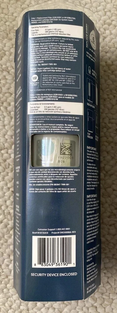 Ice and water Filter No. 1 Purple dot for Refrigerator. **DO NOT purchase if your Filter is outside bottom install** Item as pictured.