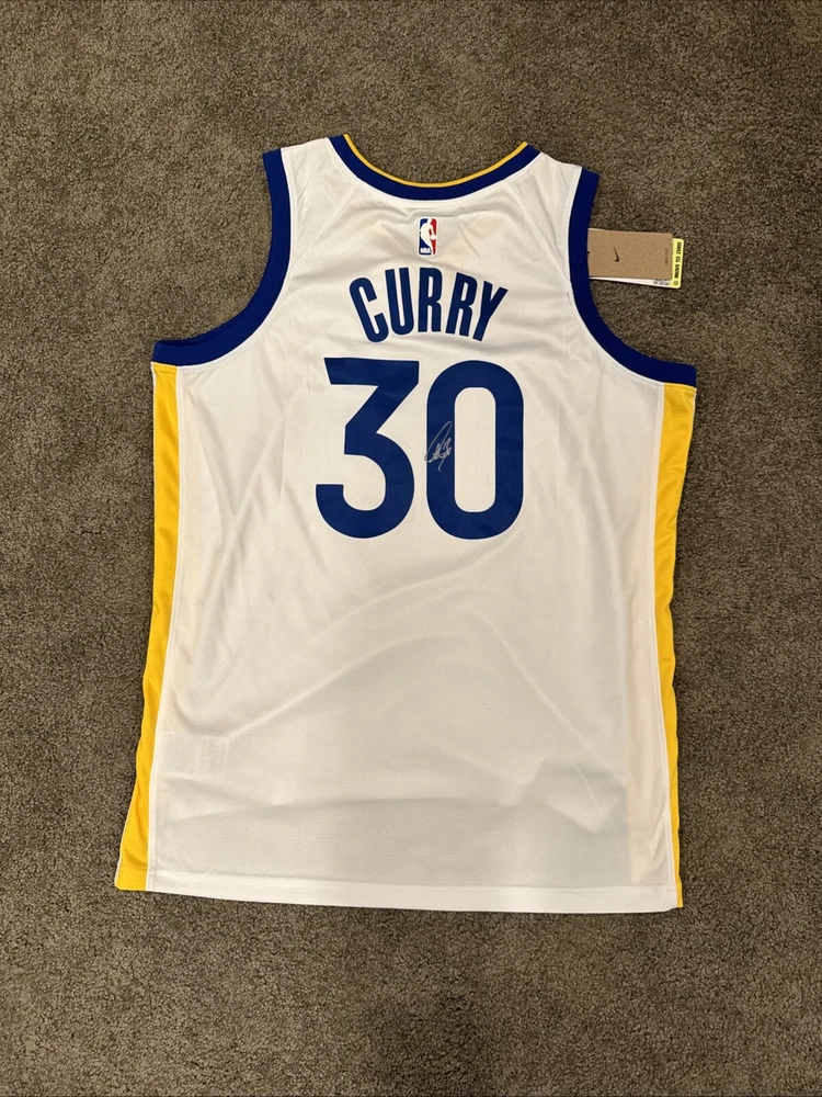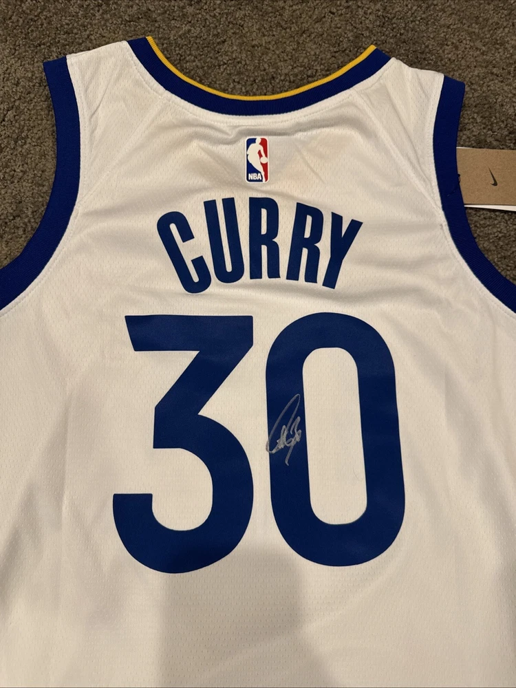 Show off your love for the Golden State Warriors and basketball superstar Stephen Curry with this authentic, signed Nike swingman jersey. The jersey features the iconic Warriors logo and is made with high-quality materials to ensure durability and comfort. As a fan of the team and Curry, you won't want to miss out on the chance to own this one-of-a-kind piece of sports memorabilia. The authenticity of the autograph is guaranteed by the seller or money back. This jersey is perfect for any basketball fan or collector looking to add a unique item to their collection. Wear it to the next game or display it in a memorabilia collection. Don't miss out on this opportunity to own a piece of basketball history. Autograph is currently uncertified will pass any 3rd party authentication process. Shipped next same/next day