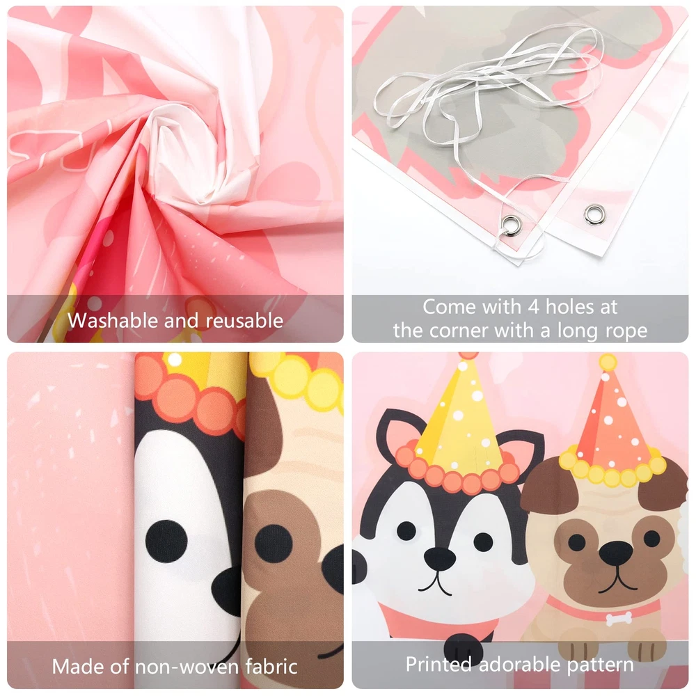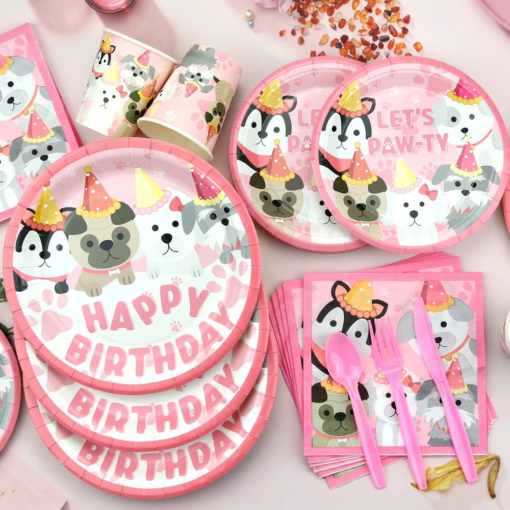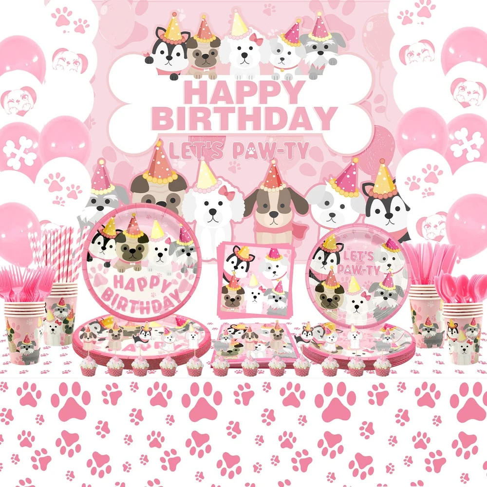 KEFAN Dog Party Supplies, Pink Dog Paw Birthday Tableware Party Decorations including Pink Dog Plates, Cups, Napkins, Tablecloth, Lets Party HAPPY BIRTHDAY Banner Backdrop, Balloons - Serves 20 Dog Paw Party Supplies Kit: A piece of pink dog paw-themed HAPPY BIRTHDAY backdrop( 5.9ft x 3.9ft / 180cm*120cm ), 12Pcs dog cake topper, 30pcs paw, and bone pattern latex balloon, 20 9" dinner plates, 20 7" dessert plates, 20 9oz paper cups, 20 napkins, 20 straws, 20 forks & knives & spoons and 1 paw table cover. Pet Element: This is a unique pink pet dog birthday decorations suit we designed. It can organize a puppy-themed birthday party or dog birthday party. The unique and bright design will make you and your friend have unforgettable puppy birthday party supplies for kids. Easy Assembly: The puppy photography background has 4 Copper holes respectively distributed in the 4 corners of the happy birthday backdrop, coming with 4 white strings, and it's easy to install anywhere, and can be applied on tablecloths, wallpaper, curtains, and photo background to add vitality. Wide Applications: This puppy-themed birthday party supplies for kids set is suitable for many fun occasions like puppy party decorations, dog birthday decorations for girls, dog birthday party supplies, kids' party supplies, girls birthday party decorations, birthday decorations for girls, pink party decorations, birthday decorations for kids, baby shower, pets' birthday, Christmas, Halloween party, photo booth props, outdoor events, and something else. Well Made: Dog-themed birthday backdrop is made of thick polyester fabrics with high-resolution printing; The "happy birthday" banner is made of thickening cardstock, and the balloons are made of natural latex. the tableware set is 100% food-grade and BPA-free, Non-toxic, biodegradable, environmentally friendly, and recyclable heavy-duty paper, which will not fold, tear or break. ( Note: Do not use microwave ovens to heat plates and cups ) Dog Paw Party Supplies Kit: A piece of pink dog paw-themed HAPPY BIRTHDAY backdrop( 5.9ft x 3.9ft / 180cm*120cm ), 12Pcs dog cake topper, 30pcs paw, and bone pattern latex balloon, 20 9" dinner plates, 20 7" dessert plates, 20 9oz paper cups, 20 napkins, 20 straws, 20 forks & knives & spoons and 1 paw table cover. Pet Element: This is a unique pink pet dog birthday decorations suit we designed. It can organize a puppy-themed birthday party or dog birthday party. The unique and bright design will make you and your friend have unforgettable puppy birthday party supplies for kids. Easy Assembly: The puppy photography background has 4 Copper holes respectively distributed in the 4 corners of the happy birthday backdrop, coming with 4 white strings, and it's easy to install anywhere, and can be applied on tablecloths, wallpaper, curtains, and photo background to add vitality. Wide Applications: This puppy-themed birthday party supplies for kids set is suitable for many fun occasions like puppy party decorations, dog birthday decorations for girls, dog birthday party supplies, kids' party supplies, girls birthday party decorations, birthday decorations for girls, pink party decorations, birthday decorations for kids, baby shower, pets' birthday, Christmas, Halloween party, photo booth props, outdoor events, and something else. Well Made: Dog-themed birthday backdrop is made of thick polyester fabrics with high-resolution printing; The "happy birthday" banner is made of thickening cardstock, and the balloons are made of natural latex. the tableware set is 100% food-grade and BPA-free, Non-toxic, biodegradable, environmentally friendly, and recyclable heavy-duty paper, which will not fold, tear or break. ( Note: Do not use microwave ovens to heat plates and cups ) Shipping from the USA All of our products are shipped from the USA, ensuring quick delivery to your destination. Payment We offer the following payment methods: PayPal, credit card, bank transfer, and eBay's secure payment system. Free Shipping & Free Returns Shipping within the USA is FREE. Additionally, any return is absolutely free for you. Risk-Free Purchase You have the option to return an item within 30 days without any justification. We cover the return shipping costs! Fast Shipping We ship immediately upon receipt of payment. Generally, the package is delivered within 2-3 days in the USA. If it takes longer, we will contact you. Quality and Costs Made in Europe, USA, China No customs fees or additional charges Total satisfaction guarantee Invoice with declared VAT available upon request in .pdf format Feedback Your feedback is very important to us. After you pay for your purchase, you will automatically receive positive feedback from us.