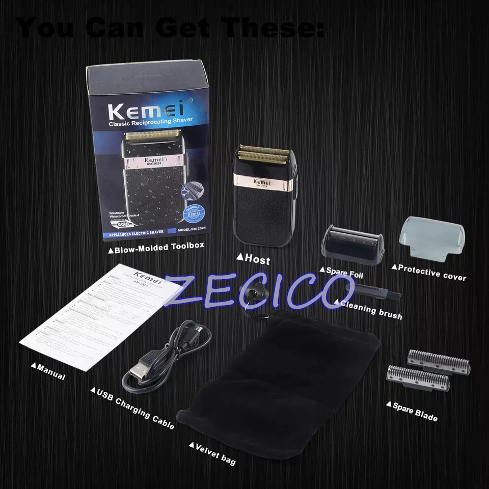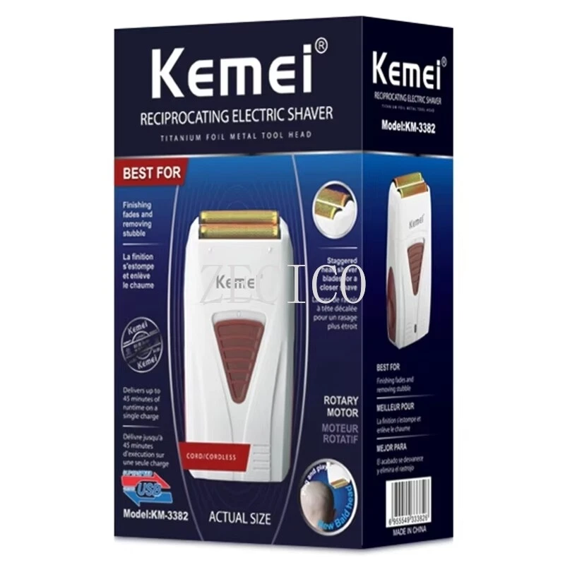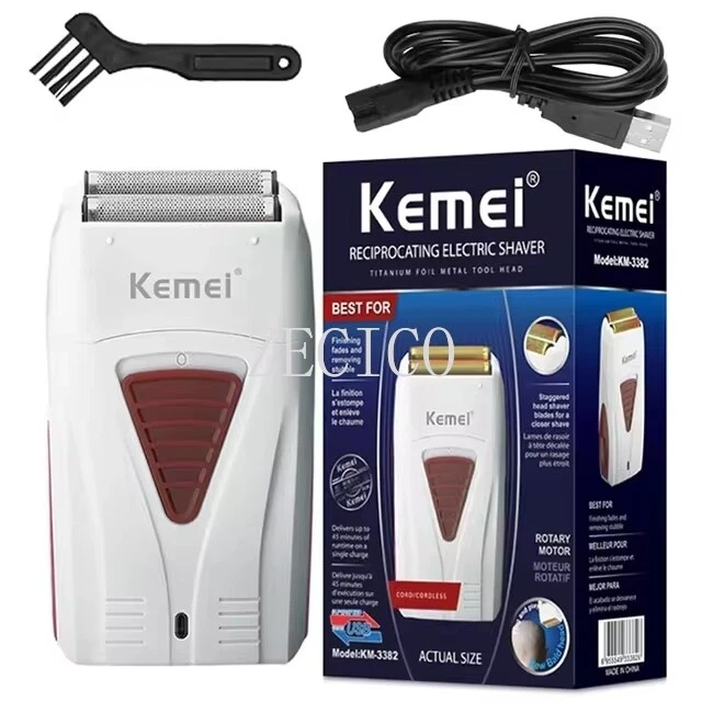 Features: 100% brand new and high quality. Rechargeable Shaver for men / women. face care multifunctional shaver men's strong shaver. KM-3382 is the best choice for you, which meet your various needs. The hair shaver has two reciprocating floating blades which shave more cleanly. The blades can be replaced by popping out. The size of hair trimmer like a phone size, which is very convenient to carry when you travel The hair clipper with grooming options lets you easily trim your hair, and provides you different excellent cutting experience! Specifications: Product model: KM-3382 Charging time: 1 hour Usage time: 45 minutes Rated power: 50-60Hz Voltage: 100-240V Cleaning method: knife head washing Product size: 11.5*6.5*3CM Cutter head type: floating double net double cutter head Package included: 1 x Electric Foil Shaver 1 x USB Charger Notes: 1. Due to the different monitor and light effect, the actual color of the item might be slightly different from the color showed on the pictures. Thank you! 2. Please allow 1-2cm measuring deviation due to manual measurement. 3.If you have any question please feel free to contact us before leaving feedback or opening a case, it's our pleasure to help you solve the problem.
