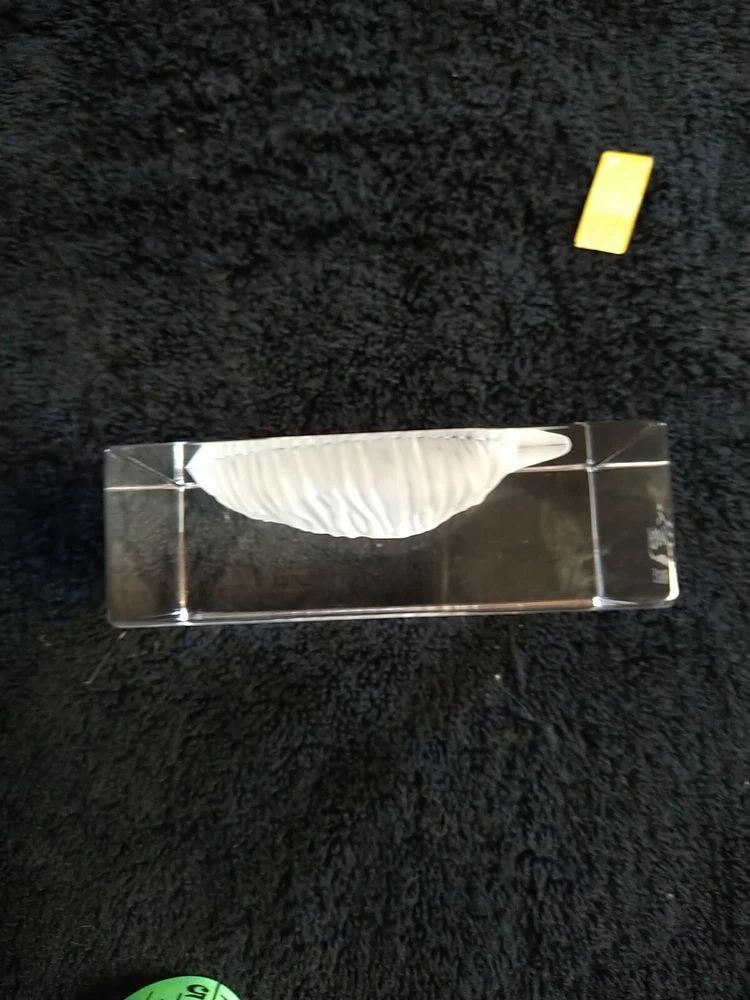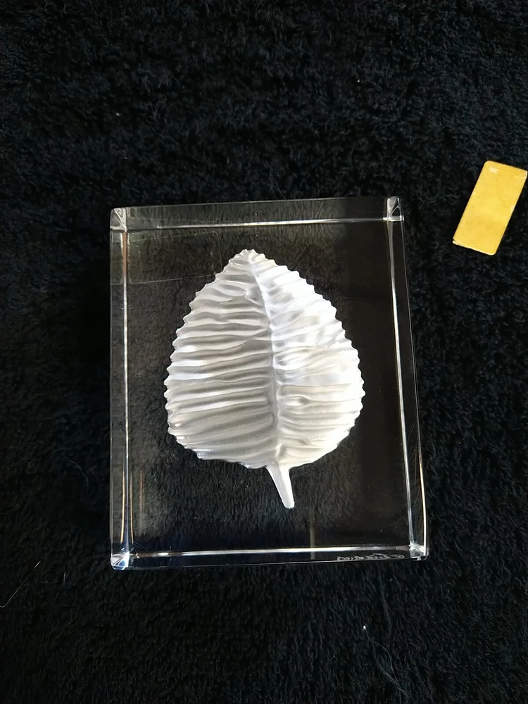 French Sevres Crystal Etched Frosted Leaf Paperweight . Vintage. Made In France. 3.25 inches tall, 2.75 inches wide and 1 inch deep. No chips or cracks that I can see. Unfortunately, the little Cristal Sevres label fell off while I was wiping it down.