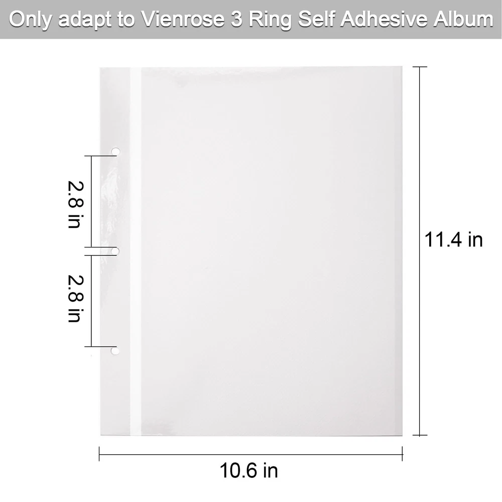 Size: self-adhesive page length 11.4 x Width 10.6 (inches), 10sheets/20 pages,suitable for 12*12inch photo album Note before buying: Even if the size of the album of different brands is the same, there will be deviations in the internal punching position of the album, so this refill pages only apply to 3 ring photo album Acid free& PVC free: While protecting the photos from the oxidation of the air, the material of the album itself will not damage the photos, and your precious memories will be completely preserved for a long time The package contains: 10 refill sheets(20 pages). Each 3 ring self -adhesive album add up to 10 supplementary pages After-sale protection: We are confident that our photo album will make you satisfied. But if you receive a product with quality problems, or you have any questions about our products, please contact our after-sales customer service before choosing a return, we will provide you with more after-sales service options