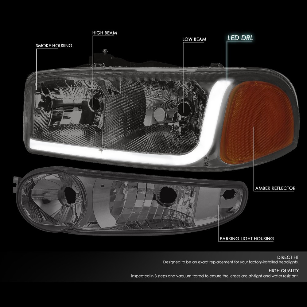 Welcome to Speed Daddy Store Home About Us Feedback Add To Favorites New Arrivals Ending Soon Contact Us FOR 01-07 SIERRA LED DRL SMOKED/AMBER CORNER HEADLIGHTS BUMPER LAMP+TOOL SET Product Description When it comes time to remove and replace or repair your headlights, first you need to remove them from your vehicle. Our specialized tool kit contains the most common tools required for removal and replacement to simplify the job. Specifics and Features : Headlight: Plug-n-Play Operation, Direct Bolt-On OE Fitment or Replacement for the Stock Unit Brings a Different Appearance to Vehicle thats Great for Show Use or to Replace Old and Worn Headlights Requires no Modification or Drilling White LED Running Light Strip Headlight Installation Tool Kit: Brand New In Original Box, Never Been Used Exactly The Same As Picture! 8.5" X 4.25" X 2.25" Heavy Duty Blow Mold Case for Easy Transport & Storage Contains Most Common Tools Needed for Headlight Removal 20 Piece Tool Kit Chrome Vanadium Construction Metric Sized Sockets & Bits Chrome Polish Finish Rubberized Non Slip Grip Includes : 1 X Pair of Headlights (Left & Right) 1 X Pair of Turn Signal Running Lights (Left & Right) 1 X 1/4" Drive Ratchet 1 X 2" 1/4" Drive Extension 1 X 3 1/4" Drive Extension 1 X Bit Drive 6-Piece Sockets : 7mm, 8mm, 9mm, 10mm, 11mm, 12mm 6-Piece 6-Point Star Torx Sockets : T10, T15, T25, T30, T35 2-Piece Philips & Standard Screw Driver Bits Trim Removal Tool Bit extension Notes : Compatible with: 2001 GMC SIERRA C3 02-06 GMC SIERRA 1500 DENALI 07 GMC SIERRA 1500 DENALI CLASSIC 01-06 GMC YUKON DENALI 01-06 GMC YUKON XL 1500 DENALI 100% Brand New Professional Installation is Highly Recommended Installation Instruction is NOT Included Shipping Payment Returns Terms & Conditions Feedback Contact Us DOMESTIC LOWER 48 US STATES: FREE SALES TAX: CA ONLY VERY IMPORTANT: Double check shipping address. We are not responsible for incorrect or undeliverable addresses. Please use Shipping & Payments tab on top of page for shipping details for your location. Shipping to PR, HI, AK and PO Box addresses will be charged the same as shipping to Canada. GU, VI, SAIPAN will be charged the same as international shipping rate. For Canada shipping please select the lowest price. We do not offer expedited shipping. US Territories such as GU, VI, SAIPAN will be charged the same as CANADA shipping rate. Transaction will be held until a full shipping amount received. Some of the packages cannot be delivered to a PO Box. Customer is responsible to ensure PO Box address given is deliverable by the shipping company. Package will be held until a valid physical address is provided. Customer assumes shipping charges incurred in shipping to undeliverable address. International buyers are responsible for all customs duties, taxes, and other applicable fees incurred by the country's customs/border regulations. Please contact customs for more information. We ship 98% of all orders the same or next business day after payment received/cleared. Please understand that once orders are shipped, we cannot control the transit times thereafter. Most orders will ship via USPS First Class/Priority Mail or FedEx/UPS or the best suitable carrier for the specific size of the product. We are not responsible for any changes to address after item has been shipped. Item will be shipped out within 24 hours after payment cleared, except for weekends and holidays. PayPal e-check takes 3-7 business days to be processed. We will not ship until an e-check has been cleared. 30 Days Free Returns, please notify us within 30 days after you've received your order. Please email us or call us to obtain a RMA (Return Merchandise Authorization) number from us, and have the RMA number written on the return package. Items to be returned must be in resalable condition. All returns are for refund ONLY. No exchange accepted. For emissions related items, please check with your local jurisdiction for emission specific requirements before purchasing. All items do not come with installation instruction unless otherwise specified. If item is questionable, please consult your local professional/mechanic before making purchase. Shipping DOMESTIC LOWER 48 US STATES: FREE SALES TAX: CA ONLY VERY IMPORTANT: Double check shipping address. We are not responsible for incorrect or undeliverable addresses. Please use Shipping & Payments tab on top of page for shipping details for your location. Shipping to PR, HI, AK and PO Box addresses will be charged the same as shipping to Canada. GU, VI, SAIPAN will be charged the same as international shipping rate. For Canada shipping please select the lowest price. We do not offer expedited shipping. US Territories such as GU, VI, SAIPAN will be charged the same as CANADA shipping rate. Transaction will be held until a full shipping amount received. Some of the packages cannot be delivered to a PO Box. Customer is responsible to ensure PO Box address given is deliverable by the shipping company. Package will be held until a valid physical address is provided. Customer assumes shipping charges incurred in shipping to undeliverable address. International buyers are responsible for all customs duties, taxes, and other applicable fees incurred by the country's customs/border regulations. Please contact customs for more information. We ship 98% of all orders the same or next business day after payment received/cleared. Please understand that once orders are shipped, we cannot control the transit times thereafter. Most orders will ship via USPS First Class/Priority Mail or FedEx/UPS or the best suitable carrier for the specific size of the product. We are not responsible for any changes to address after item has been shipped. Payment Item will be shipped out within 24 hours after payment cleared, except for weekends and holidays. PayPal e-check takes 3-7 business days to be processed. We will not ship until an e-check has been cleared. Returns 30 Days money back, please not