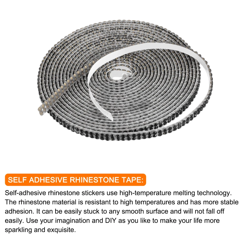 0.2 Inch Self Adhesive Rhinestone Strips 3 Yard for Crafts,Black