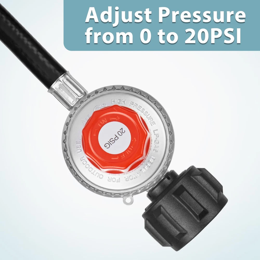 0-20 PSI Adjustable Propane Regulator and Hose with Orifice Kit, 4 Feet Gas B...