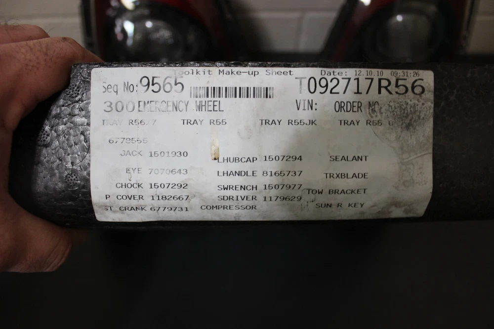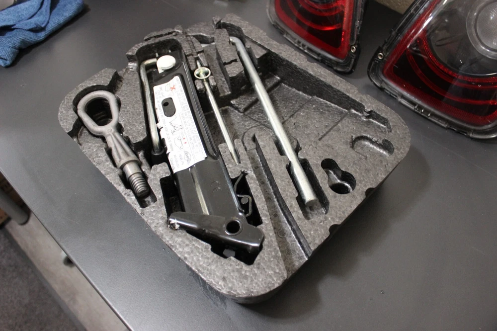 02-15 R50 R52 R53 R56 MINI COOPER SPARE TIRE JACK LUG TOOL KIT FOAM TRAY Removed from a 2013 Mini Cooper S with ONLY 43k Miles. Will work with the following models listed below. Actual pics are shown. INGREAT shape. Will work with all the models listed below. Please check pics for condition. Great shape. CHECK PART NUMBERS. BUYER IS RESPONSIBLE FOR COMPATABILITY R50 R52 R53 R55, R56, R57, R58, R59 ACTUAL PICS ARE SHOWN