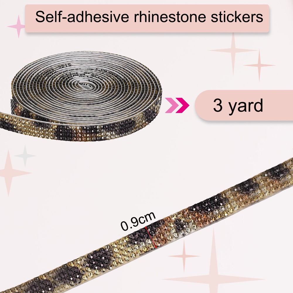 Document What is this?These self-adhesive rhinestone tapes can meet different decoration and needs in daily life, such as decorating the inside and outside of mobile phones, laptops, cups, even shoes, mobile phone chargers and any decoration you want, you can also decorate with craft lovers Share with friends or family.What will I get?Rhinestone ribbon size: 4 rows of diamonds (width 0.9 cm),each roll is 3 yard.Color: Leopard PrintIn the package of: 1 Roll x self-adhesive rhinestone stripsAre there any advantages of the product?Self-adhesive rhinestone stickers use high-temperature melting technology, rhinestone materials, high temperature resistance, more stable adhesion, combined with rhinestones. Can be easily stuck on any smooth surface and won't fall off easily. Just use your imagination and DIY as you like to make your life more sparkling and exquisiteHow to use it?Steps of installation: 1. Cut these shiny crystal stickers into different shapes or lengths as needed; 2. Peel off the backing paper of the sticker and press it on your desired surfaceWhat should I notice?Note: Do not contact water or other liquids within 48 hours after pasting. 0.35 Inch Self Adhesive Rhinestone Strips 3 Yard for Crafts,Leopard Print What is this? These self-adhesive rhinestone tapes can meet different decoration and needs in daily life, such as decorating the inside and outside of mobile phones, laptops, cups, even shoes, mobile phone chargers and any decoration you want, you can also decorate with craft lovers Share with friends or family. What will I get? Rhinestone ribbon size: 4 rows of diamonds (width 0.9 cm),each roll is 3 yard. Color: Leopard Print In the package of: 1 Roll x self-adhesive rhinestone strips Are there any advantages of the product? Self-adhesive rhinestone stickers use high-temperature melting technology, rhinestone materials, high temperature resistance, more stable adhesion, combined with rhinestones. Can be easily stuck on any smooth surface and won't fall off easily. Just use your imagination and DIY as you like to make your life more sparkling and exquisite How to use it? Steps of installation: 1. Cut these shiny crystal stickers into different shapes or lengths as needed; 2. Peel off the backing paper of the sticker and press it on your desired surface What should I notice? Note: Do not contact water or other liquids within 48 hours after pasting. Hot Item Payment 1.We accept eBay payment . 2.Payment must be received within 7 business days of auction closing. Shipping 1.We ship to your eBay or Paypal address. Please make sure your eBay and Paypal address is correct before you pay. 2.Items will be shipped within 1-3 business day when we received payment. 3.Delivery time depends on destination and other factors. Description Policy 0.35 Inch Self Adhesive Rhinestone Strips 3 Yard for Crafts,Leopard Print What is this? These self-adhesive rhinestone tapes can meet different decoration and needs in daily life, such as decorating the inside and outside of mobile phones, laptops, cups, even shoes, mobile phone chargers and any decoration you want, you can also decorate with craft lovers Share with friends or family. What will I get? Rhinestone ribbon size: 4 rows of diamonds (width 0.9 cm),each roll is 3 yard. Color: Leopard Print In the package of: 1 Roll x self-adhesive rhinestone strips Are there any advantages of the product? Self-adhesive rhinestone stickers use high-temperature melting technology, rhinestone materials, high temperature resistance, more stable adhesion, combined with rhinestones. Can be easily stuck on any smooth surface and won't fall off easily. Just use your imagination and DIY as you like to make your life more sparkling and exquisite How to use it? Steps of installation: 1. Cut these shiny crystal stickers into different shapes or lengths as needed; 2. Peel off the backing paper of the sticker and press it on your desired surface What should I notice? Note: Do not contact water or other liquids within 48 hours after pasting. Hot Item Payment 1.We accept eBay payment . 2.Payment must be received within 7 business days of auction closing. Shipping 1.We ship to your eBay or Paypal address. Please make sure your eBay and Paypal address is correct before you pay. 2.Items will be shipped within 1-3 business day when we received payment. 3.Delivery time depends on destination and other factors.