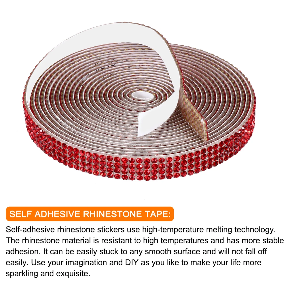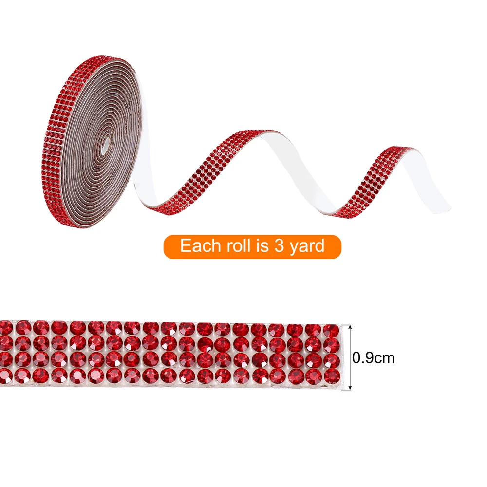 0.35 Inch Self Adhesive Rhinestone Strips 3 Yard for Crafts,Red