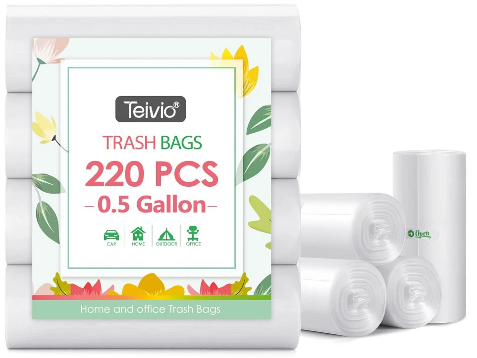 0.5 Gallon Mini Strong Trash Bags Garbage Bags, Tiny Bathroom Trash Can Liners by Teivio, Small Plastic Bags for Desktop Trash Bin/Dog/Poop Car, Fit 2 Liters or Less Can (220 Counts, Clear) Brand Teivio Capacity 0.5 Gallons Unit Count 220.0 Count Recommended Uses For Product Dog Waste,Garbage Bags Material Feature Tough/Durable Color Clear Material Plastic Item Form Bag Scent Unscented Number of Items 220 About this item MATERIAL: our small trash bags are all made of the HDPE material. This kind of material can make the garbage bags stronger. MULTIPURPOSE: This bag is designed not only for indoor use (for office, kitchen, living room, bedroom, bathroom, diaper disposal, paper shredder etc) but also for outdoor applications (cat litter, dog waste, car trash etc). STAR SEAL BOTTOM: Allows easy removal from receptacle. This bag is pure clear. It allows to easily view and identify the contents of the bag to help separate. SIZE FOR SMALL TRASH CANS: An integral forming on the bottom leaves no space to leak. ROLL DESIGN: You can put a roll of garbage bags in your rooms, living room, bathroom, your kitchen and your car, etc. . We offer FREE shipping on all orders! . We ship within Five business days of payment, usually sooner. . We use a selection of shipping services such as UPS, FedEx, USPS etc. . We only ship to the lower 48 states, no APO/FPO addresses or PO Boxes allowed. . Local pickups and combined shipping options are not provided at this time. . Your satisfaction is a wonderful reward for our efforts. Please assist us by leaving a positive review if you feel pleased with our service. . In the event that you encounter any difficulties related to your order, please do not hesitate to reach out to us directly through the Messaging system on the Ebay platform. Kindly consider opening a COMPLAINT or a RETURN REQUEST as a last resort, only after all other possible measures have been attempted and we have been unable to provide you with assistance. . We will get in touch with you within 24 hours and make every effort to ensure your satisfaction. . Please rest assured of our service quality.