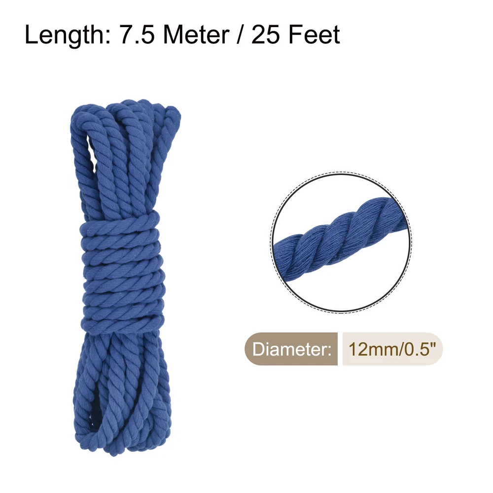Document About the product:Macrame cord is widely used in macrame plant hangers, key chains, macrame coasters and other home decorations. It is also very suitable for holiday decorations such as Christmas, gift wrapping ropesMacrame cords is widely used in weaving lace, as drawstrings on clothes or hats, for party decorations, dream catchers, wall hangings, curtains with many tassels, gardening, gift wrapping, packaging materials, jewelry and handicraftsGood Choice for you:The cotton rope is made of pure natural cotton, which is soft, strong and easy to use, with flexibility and strength to make knotting easierNot easy to wear, pilling and fade, get creative with our rich selection of colorful ropesCan be used in a wide range of macrame applications from small to large, such as home decor, knitting and crochet projectsSpecification:Diameter: 12 mm ( 0.5 Inch )Length: 7.5 Meter / 25 FeetColor: Dark BlueMaterial: CottonIn the package of: 1 x cotton macrame cordEasy to install:You can cut it to any length you need and it's easy to untie and storeTips: There may be slight color difference due to different displays. Please use it at room temperature to avoid moisture damaging the cotton rope 0.5 Inch 25 Feet Macrame Cord, Cotton Cord Rope String - Dark Blue About the product: Macrame cord is widely used in macrame plant hangers, key chains, macrame coasters and other home decorations. It is also very suitable for holiday decorations such as Christmas, gift wrapping ropes Macrame cords is widely used in weaving lace, as drawstrings on clothes or hats, for party decorations, dream catchers, wall hangings, curtains with many tassels, gardening, gift wrapping, packaging materials, jewelry and handicrafts Good Choice for you: The cotton rope is made of pure natural cotton, which is soft, strong and easy to use, with flexibility and strength to make knotting easier Not easy to wear, pilling and fade, get creative with our rich selection of colorful ropes Can be used in a wide range of macrame applications from small to large, such as home decor, knitting and crochet projects Specification: Diameter: 12 mm ( 0.5 Inch ) Length: 7.5 Meter / 25 Feet Color: Dark Blue Material: Cotton In the package of: 1 x cotton macrame cord Easy to install: You can cut it to any length you need and it's easy to untie and store Tips: There may be slight color difference due to different displays. Please use it at room temperature to avoid moisture damaging the cotton rope Hot Item Payment 1.We accept eBay payment . 2.Payment must be received within 7 business days of auction closing. Shipping 1.We ship to your eBay or Paypal address. Please make sure your eBay and Paypal address is correct before you pay. 2.Items will be shipped within 1-3 business day when we received payment. 3.Delivery time depends on destination and other factors. Description Policy 0.5 Inch 25 Feet Macrame Cord, Cotton Cord Rope String - Dark Blue About the product: Macrame cord is widely used in macrame plant hangers, key chains, macrame coasters and other home decorations. It is also very suitable for holiday decorations such as Christmas, gift wrapping ropes Macrame cords is widely used in weaving lace, as drawstrings on clothes or hats, for party decorations, dream catchers, wall hangings, curtains with many tassels, gardening, gift wrapping, packaging materials, jewelry and handicrafts Good Choice for you: The cotton rope is made of pure natural cotton, which is soft, strong and easy to use, with flexibility and strength to make knotting easier Not easy to wear, pilling and fade, get creative with our rich selection of colorful ropes Can be used in a wide range of macrame applications from small to large, such as home decor, knitting and crochet projects Specification: Diameter: 12 mm ( 0.5 Inch ) Length: 7.5 Meter / 25 Feet Color: Dark Blue Material: Cotton In the package of: 1 x cotton macrame cord Easy to install: You can cut it to any length you need and it's easy to untie and store Tips: There may be slight color difference due to different displays. Please use it at room temperature to avoid moisture damaging the cotton rope Hot Item Payment 1.We accept eBay payment . 2.Payment must be received within 7 business days of auction closing. Shipping 1.We ship to your eBay or Paypal address. Please make sure your eBay and Paypal address is correct before you pay. 2.Items will be shipped within 1-3 business day when we received payment. 3.Delivery time depends on destination and other factors.