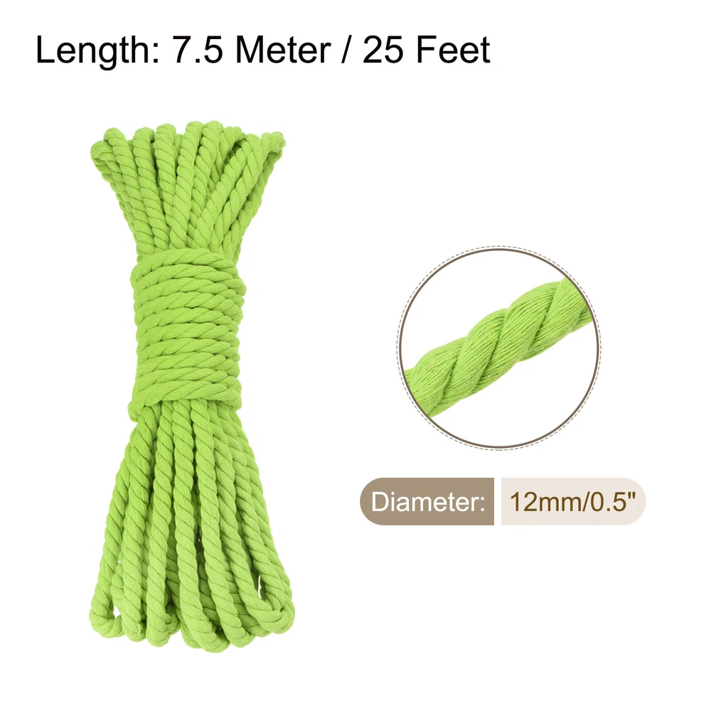 Document About the product:Macrame cord is widely used in macrame plant hangers, key chains, macrame coasters and other home decorations. It is also very suitable for holiday decorations such as Christmas, gift wrapping ropesMacrame cords is widely used in weaving lace, as drawstrings on clothes or hats, for party decorations, dream catchers, wall hangings, curtains with many tassels, gardening, gift wrapping, packaging materials, jewelry and handicraftsGood Choice for you:The cotton rope is made of pure natural cotton, which is soft, strong and easy to use, with flexibility and strength to make knotting easierNot easy to wear, pilling and fade, get creative with our rich selection of colorful ropesCan be used in a wide range of macrame applications from small to large, such as home decor, knitting and crochet projectsSpecification:Diameter: 12 mm ( 0.5 Inch )Length: 7.5 Meter / 25 FeetColor: Fruit GreenMaterial: CottonIn the package of: 1 x cotton macrame cordEasy to install:You can cut it to any length you need and it's easy to untie and storeTips: There may be slight color difference due to different displays. Please use it at room temperature to avoid moisture damaging the cotton rope 0.5 Inch 25 Feet Macrame Cord, Cotton Cord Rope String - Fruit Green About the product: Macrame cord is widely used in macrame plant hangers, key chains, macrame coasters and other home decorations. It is also very suitable for holiday decorations such as Christmas, gift wrapping ropes Macrame cords is widely used in weaving lace, as drawstrings on clothes or hats, for party decorations, dream catchers, wall hangings, curtains with many tassels, gardening, gift wrapping, packaging materials, jewelry and handicrafts Good Choice for you: The cotton rope is made of pure natural cotton, which is soft, strong and easy to use, with flexibility and strength to make knotting easier Not easy to wear, pilling and fade, get creative with our rich selection of colorful ropes Can be used in a wide range of macrame applications from small to large, such as home decor, knitting and crochet projects Specification: Diameter: 12 mm ( 0.5 Inch ) Length: 7.5 Meter / 25 Feet Color: Fruit Green Material: Cotton In the package of: 1 x cotton macrame cord Easy to install: You can cut it to any length you need and it's easy to untie and store Tips: There may be slight color difference due to different displays. Please use it at room temperature to avoid moisture damaging the cotton rope Hot Item Payment 1.We accept eBay payment . 2.Payment must be received within 7 business days of auction closing. Shipping 1.We ship to your eBay or Paypal address. Please make sure your eBay and Paypal address is correct before you pay. 2.Items will be shipped within 1-3 business day when we received payment. 3.Delivery time depends on destination and other factors. Description Policy 0.5 Inch 25 Feet Macrame Cord, Cotton Cord Rope String - Fruit Green About the product: Macrame cord is widely used in macrame plant hangers, key chains, macrame coasters and other home decorations. It is also very suitable for holiday decorations such as Christmas, gift wrapping ropes Macrame cords is widely used in weaving lace, as drawstrings on clothes or hats, for party decorations, dream catchers, wall hangings, curtains with many tassels, gardening, gift wrapping, packaging materials, jewelry and handicrafts Good Choice for you: The cotton rope is made of pure natural cotton, which is soft, strong and easy to use, with flexibility and strength to make knotting easier Not easy to wear, pilling and fade, get creative with our rich selection of colorful ropes Can be used in a wide range of macrame applications from small to large, such as home decor, knitting and crochet projects Specification: Diameter: 12 mm ( 0.5 Inch ) Length: 7.5 Meter / 25 Feet Color: Fruit Green Material: Cotton In the package of: 1 x cotton macrame cord Easy to install: You can cut it to any length you need and it's easy to untie and store Tips: There may be slight color difference due to different displays. Please use it at room temperature to avoid moisture damaging the cotton rope Hot Item Payment 1.We accept eBay payment . 2.Payment must be received within 7 business days of auction closing. Shipping 1.We ship to your eBay or Paypal address. Please make sure your eBay and Paypal address is correct before you pay. 2.Items will be shipped within 1-3 business day when we received payment. 3.Delivery time depends on destination and other factors.