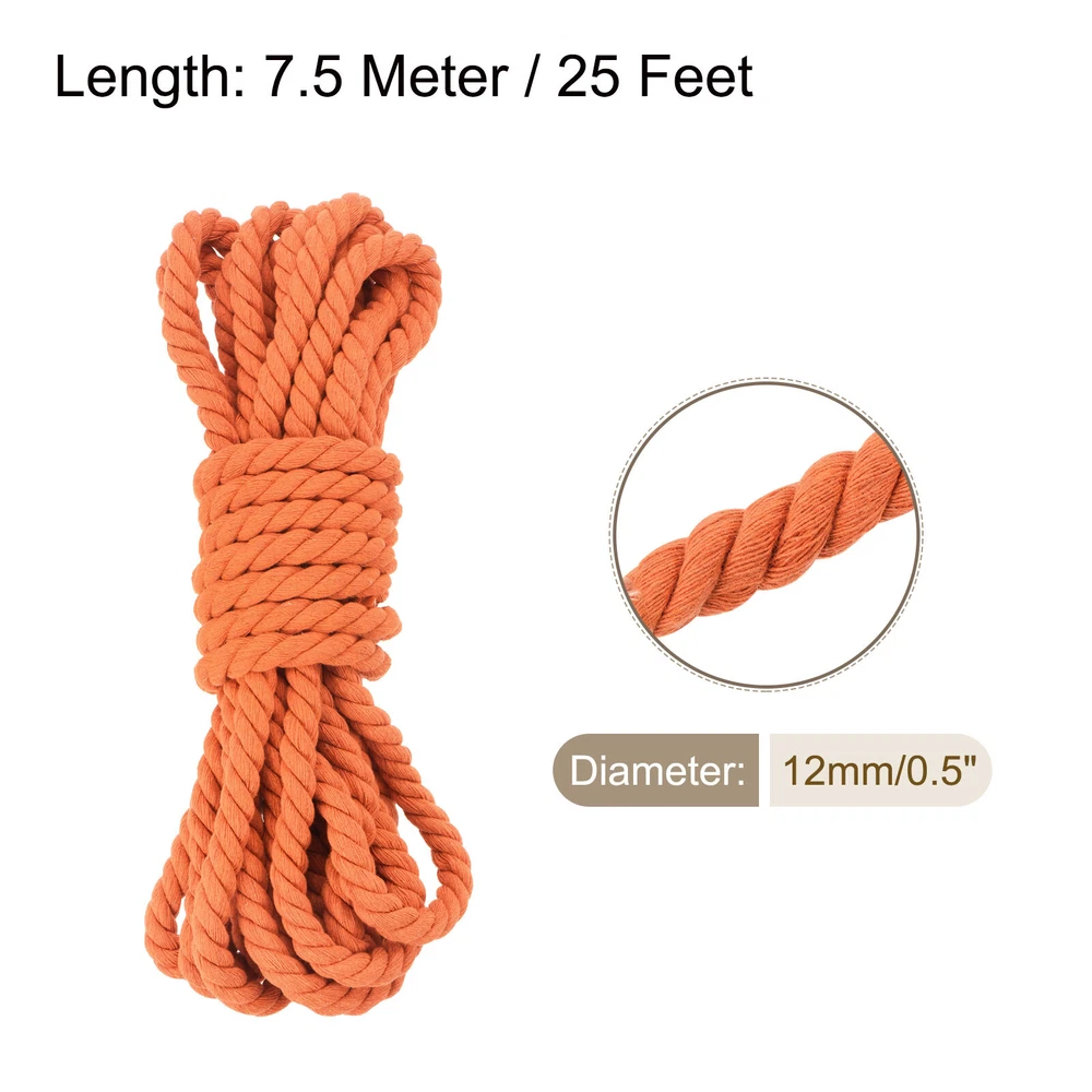 0.5 Inch 25 Feet Macrame Cord, Cotton Cord Rope String - Orange