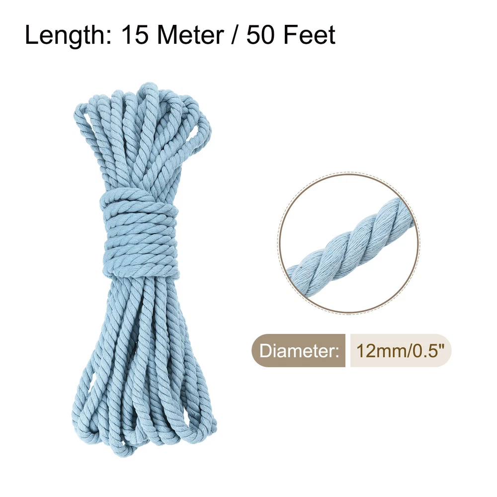 0.5 Inch 50 Feet Macrame Cord, Cotton Cord Rope String - Light Blue