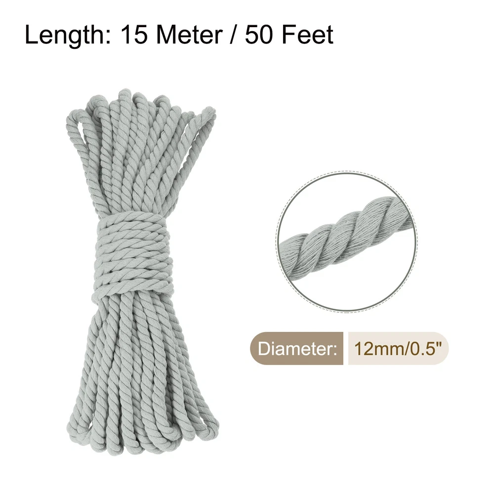 0.5 Inch 50 Feet Macrame Cord, Cotton Cord Rope String - White Grey