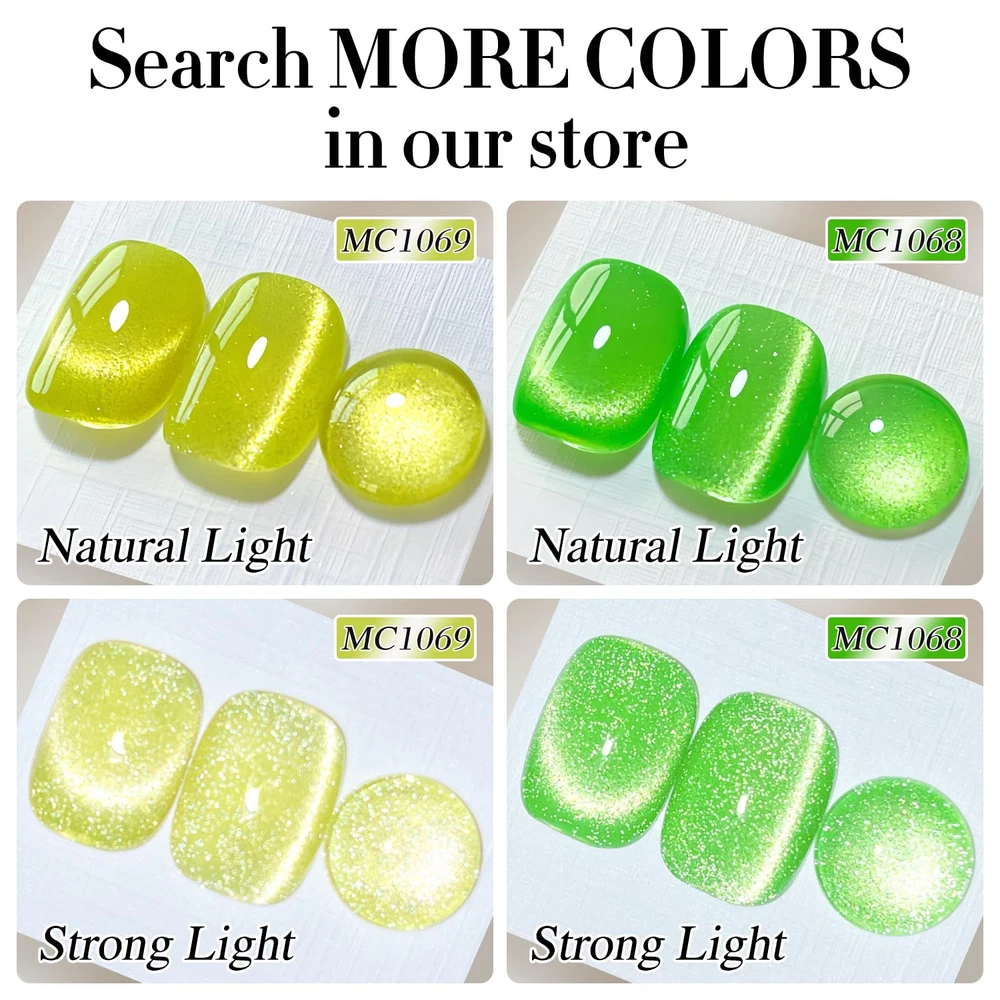 0.5 OZ Cat Eye Gel Polish with Magnet 15ML Holographic Glitter Shimmer Translucent Jelly Color Magnetic Nail Polish Salon DIY at Home (MC1069) Cat Eye Gel Nail Polish : Double Rhythm cat eye gel nail polish kit includes 1 color 15ml / 0.5 fl.oz gel nail polish. The cat eye gel can be combined with different bacse colors arbitrarily, you can get different colors nail art.Each kit comes with one magnetic tool for you to create a different cat eye style for your nails. Non Toxic and Natural: This healthy shimmer gel nail polish kit are made from 9 Toxin Free Ingredient which makes it safe and has low odor. With good tenacity and highly pigmented, premium gel material bring you brilliant shine finish, smooth appearance and flawless coverage. Easy Application for Beginner :This glitter gel nail polishset need to be cured under LED nail lamp. These need to be cured under UV or LED Lamp for 60-120s. Please shake the bottle or warm it with hot water before use especailly in cold weather, to acheive a better effect. Enjoy Nail Art and Save Money: Various of beautiful colors attract attention on any occasion, you can design your own nails and share it with you sisters and daughter and mother at home. Perfect gift for birthday, holiday, anniversary, Christmas, Valentine's Day, Mother's Day gift. Warning: May cause an allergic reaction by skin contact. Read directions for use carefully. Professionally formulated and only used for nails. Avoid contact with eyes, mouth, and skin. In case of contact with them, rinse immediately with water. If there is any incident, contact the doctor immediately. Stop using the product if redness and itching develop. Keep out of the reach of children Product Description Item dimensions L x W x H 3.19 x 1.34 x 1.34 inches Liquid Volume 0.5 Fluid Ounces Special Feature Long Wearing, Quick Dry, Chip Resistant, Holographic Color Yellow Type gel Product Dimensions 3.19 x 1.34 x 1.34 inches; 2.89 ounces Material Type Free Alcohol Free Included Components Gel Nail Polish, Magnetic Tool Item Form Gel Finish Type Glossy Shipping Fast shipping is very important for us. Our standard US shipping service is FREE. Your order will be shipped within 2-3 business days upon full payment received. Your order will be delivered within 2-3 business days after the handling time. We only ship to the confirmed PayPal address. We reserve the right to cancel any order for any reason at any time. We are not responsible for undeliverable addresses. Returns and payment We offer a 30 days return policy from checkout winning date. We allow only PayPal as payment method FeedBack Your feedback very important to us, after you get your package and you are satisfied with our service please leave us positive feedback If you have any problem with your order / any questions please before leave any type of feedback For any questions, using eBay contact system Please visit our eBay store to check out other items for sale! Thank you for shopping at our store.