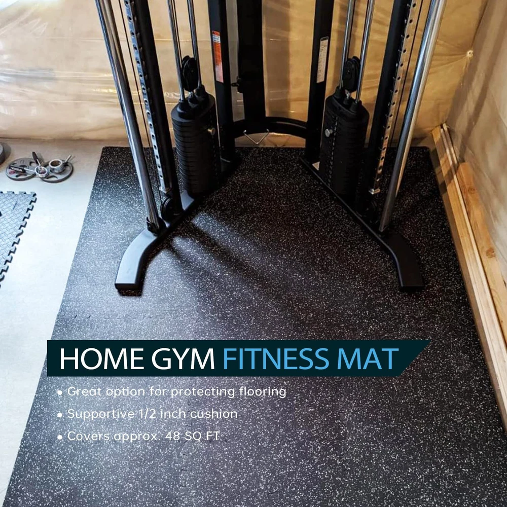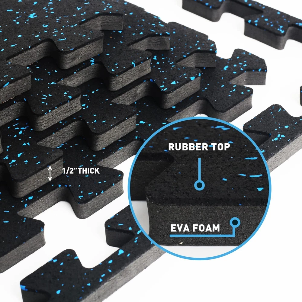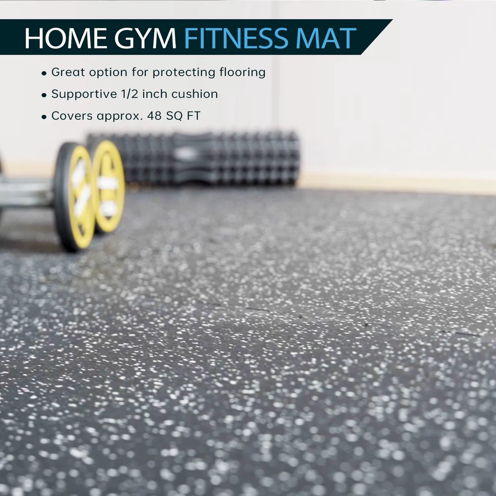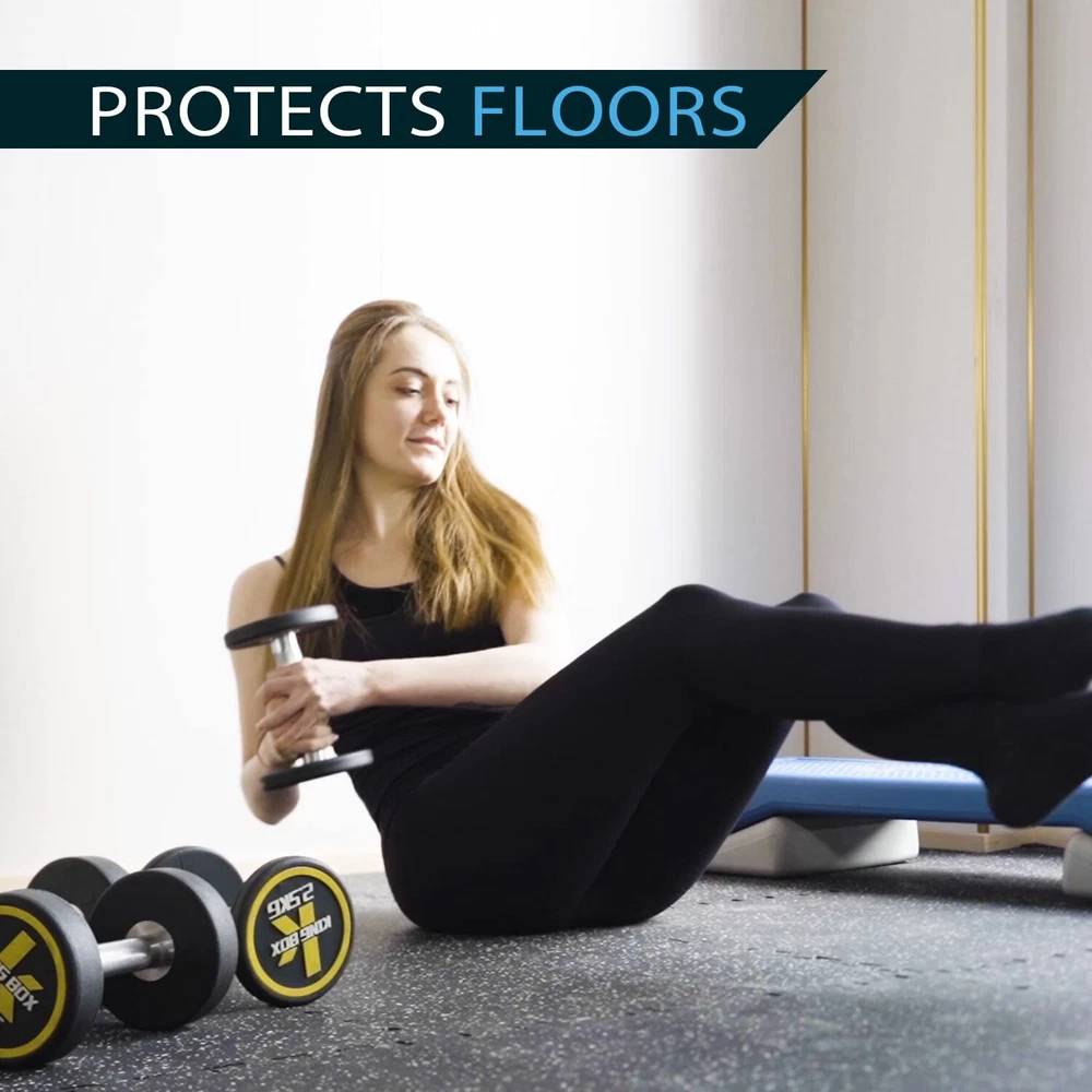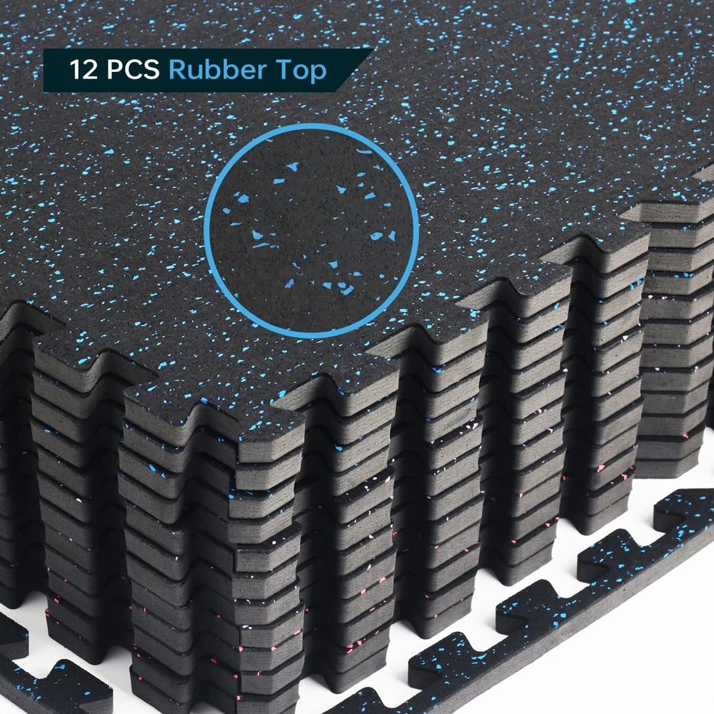 0.56 Inch Thick Gym Flooring for Home Gym with Rubber Top - 48 Sq Ft Interlockin Rubber Top - Better Choice for Home Gym: You will like the rubber top because the common EVA foam mats are too soft or flimsy for your home gym and all rubber fitness mats were too expensive. This double-layer mat is the perfect solution for working out at home, you will get the softness and affordability of the EVA foam with the sturdiness of the rubber layer on top Great Vibration Reduction - The Perfect Partner for Your Fitness Equipment: These gym floor tiles will greatly reduce the floor vibrations from the exercise machines. Compatible with treadmills, exercise bikes, vibration machines, rowing machines, elliptical machines, rowing machines, weight lifting benches, stepping machines, and many more at-home workout equipment Recycled Rubber- Feeling Great Under Bare Feet: The home gym flooring is Made of environmentally friendly recycled rubber. You will like the feel of walking on it, exactly like the floor at the gym. This flooring was the perfect addition to Home Gym for online fitness classes with lots of impacts, core training, and more. Please note: It does carry a rubber smell, airing out the room for a couple of days will be better Interlocking Puzzle Exercise Mats- Change Your Home to The Gym In Seconds: Each pack comes with 12 tiles(24" x 24" x0.56") and 24 borders to cover 48 square feet. Upgrade larger interlocking lock for grip together tightly. It was extremely easy to put together making a perfect workout and training space, just like being at the gym! Upgrade Your Home Gym to the Next Level: All Holymus gym products come with a 2-year warranty and 100% Satisfaction Guarantee to make your purchase worry free. Simply contact us or your vendor if you have any questions. Customer satisfaction is our highest priority Shipping We offer FREE shipping on all orders! We ship within Three business days of payment, usually sooner. We use a selection of shipping services such as UPS, FedEx, USPS etc. We only ship to the lower 48 states, no APO/FPO addresses or PO Boxes allowed. Local pickups and combined shipping options are not provided at this time. Return You can return a product for up to 30 days from the date you purchased it. Any product you return must be in the same condition you received it and in the original packaging. Please keep the receipt. Payment We accept payment by any of the following methods: PayPal Please pay as soon as possible after winning an auction, as that will allow us to post your item to you sooner! Feedback Customer satisfaction is very important to us. If you have any problem with your order, please contact us and we will do our best to make you satisfied. Contact Us If you have any queries, please contact us via ebay. We usually respond within 24 hours on weekdays. Please visit our eBay store to check out other items for sale! Thank you for shopping at our store.