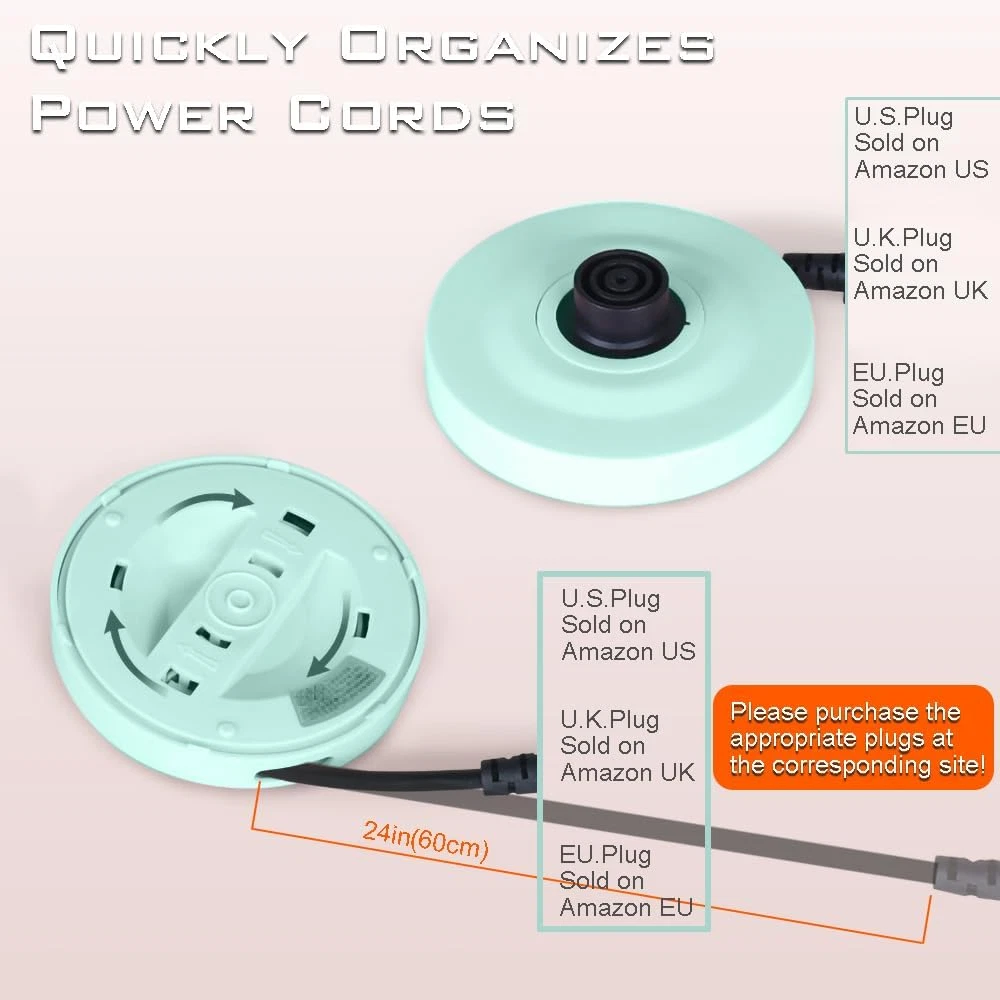 ☑️【Compact and Portable】The small electric kettle with a capacity of 0.5L, makes it easy to carry. It is suit for 2-3 people use. Take up a little space on your desk or countertop, this small electric tea kettle is an ideal appliance for student’s dorms, offices, or small kitchens. ☑️【Fast Boiling & Safety】This mini electric tea kettle with 600 watts, only one touch on/off switch button easy to boiling water fast. Auto shut off and boil dry protection function ensure the safe use. ☑️【Convenient Clean and Storage】Large opening kettle, measure 4 inches (10 cm) diameter, hands can be easily put in to clean. The cord store base both can be removed from cordless kettle for easy storage.WARM TIPS - During use it many times, there maybe produce rusty spots in the bottom of the pot, pls don't worry about it, and it is not product quality problem, just because of the local water, you can use the vinegar to clean it. ☑️【Food Grade 304 Stainless Steel 】The inner surface of all stainless steel has no plastic component in the area of contact with water. Ensure safe and healthy. Insulated outer surface and handle keep cool touch.This stainless steel travel electric kettle makes tea or coffee purest tastes. ☑️【Suitable for All Occasions】This portable water boiler is convenient kitchen appliance on daily life. It can use anywhere, such as the dorm room, home, camping, traveling, office and rented house without kitchen, business trip or the leisure dinner. Product Description WHY CHOOSE THE RHD COMPACT KETTLE? Do you drink safe and healthy hot water while traveling or on business? Our electric kettle interior and all places in contact with water are high quality food grade stainless steel, no plastic in contact with the water, ensure your safety and health. Specially designed 0.5 liter capacity, super compact and portable, will not occupy space, convenient for all your travel. Suitable for business, hotel, office or daily use. Food Grade 304 Stainless Steel Portable Electric Kettle The RHD mini kettle's inner liner is seamless with one-piece molding technology for easy cleaning Precise Thermostat, Mini Kettle Automatically Shuts Off When Boiled RHD small kettle adopts precise temperature controller, with automatic shut-off, overheating automatic stop, anti-dry burning function 0.5L 600W Compact Electric Kettle The 0.5L personal exclusive capacity is designed and features 600W low power technology, allowing it to be used in more situations without being limited! Such as RVs, hotels, hospitals, etc. RHD kettle takes about 7 minutes to boil water Small Electric Kettle That is Easy to Store and Carry Around The base of the RHD Compact Water Boiler is separate from the main body, and the power cord on the base can be hidden storage ENJOY YOUR HOT BEVERAGE ANYTIME, ANYWHERE! Bring a small RHD water heating bottle with you on your trip. Doesn't take up much space, healthy, hygienic! Small Water Heater Best for offices Mini Electric Kettle for RVs Portable Electric Water Boiler for Travel Volts AC voltage; North American stations sell 110V and US plugs; The UK station sells 220V and UK plug; EU station sells 220V and EU plug. Rated Power 600W Rated Frequency 50Hz Product Weight 550G Capacity Add boiling capacity 0.5L
